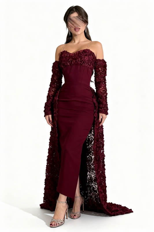 فستان سوليس للسهرات بأكمام طويلة