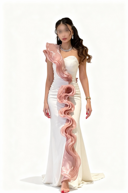 فستان كريمي بكتف واحد