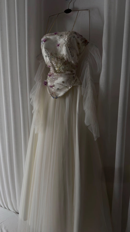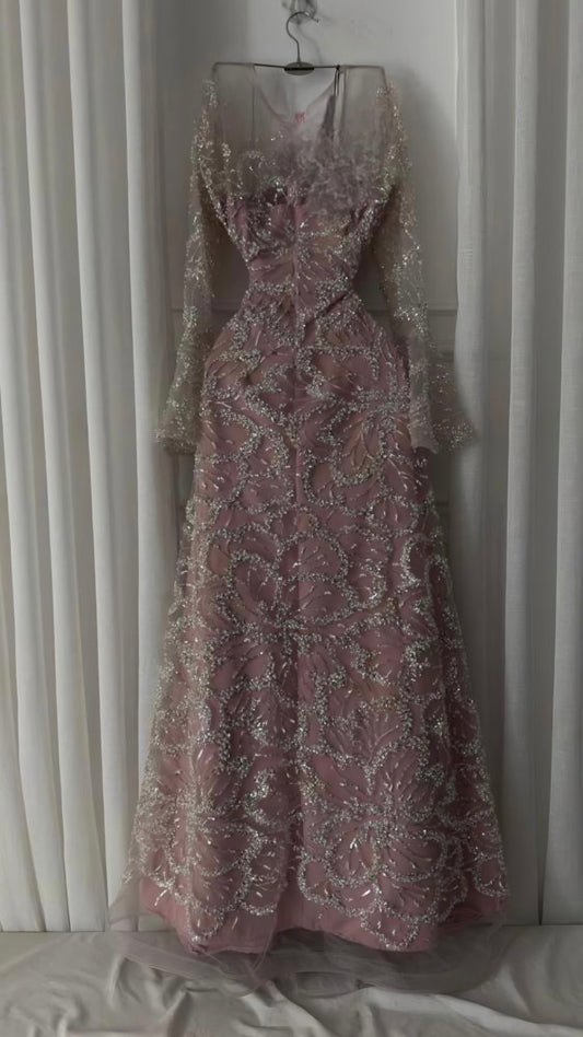فستان سهرة ورد تفاحي