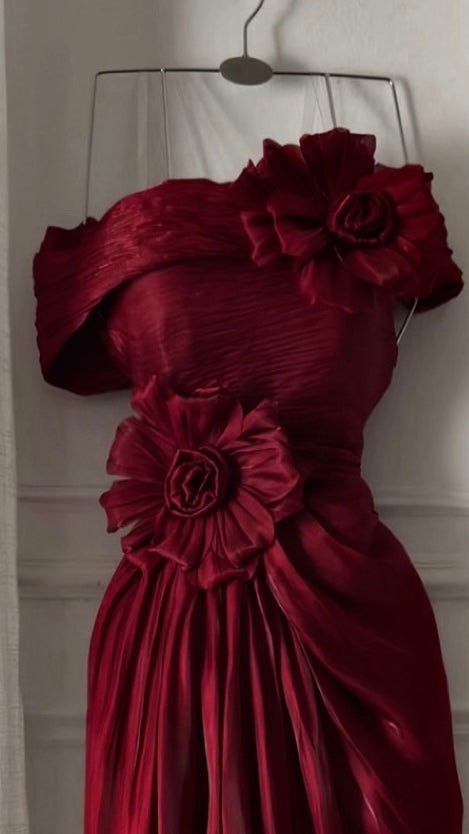 فستان سهرة ورد أحمر