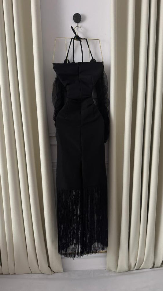 فستان سوليس للسهرات بأكمام طويلة