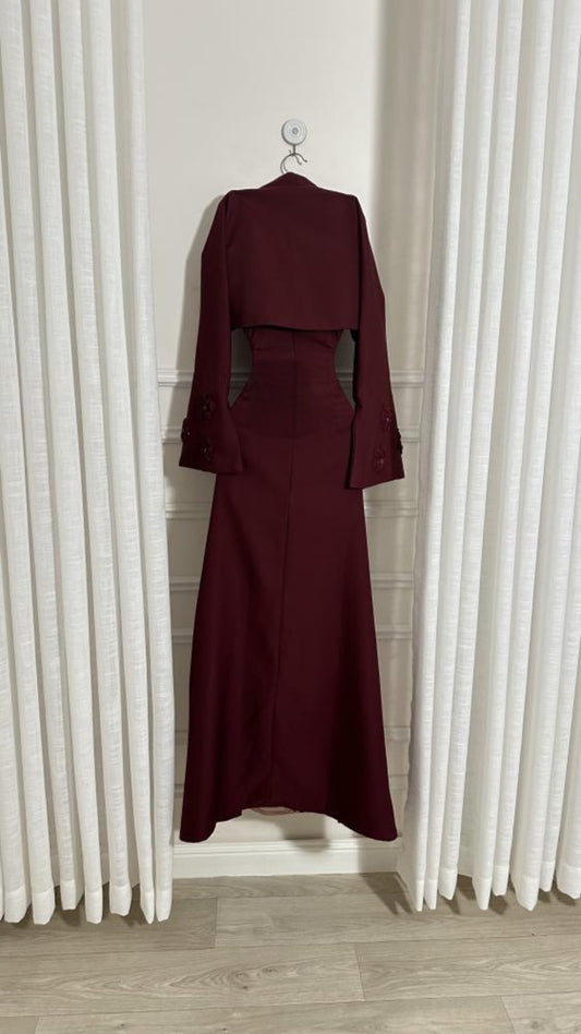 فستان برغندي مطرز ناعم
