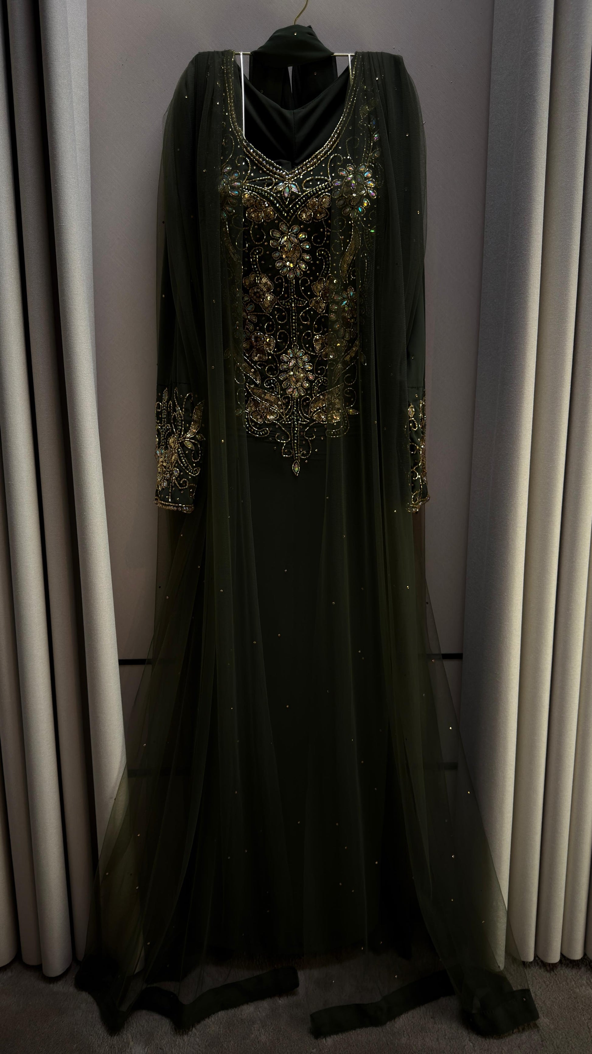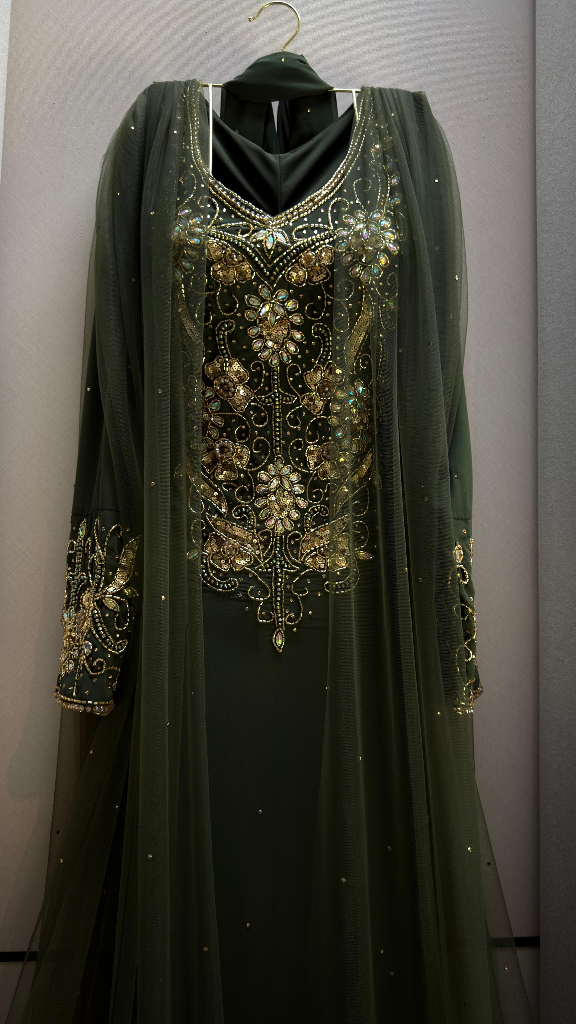 هذا الفستان الأخضر الفاتح هو خيار مثالي لمن يرغب في إطلالة تجمع بين التقاليد والأناقة، مما سيجعلك تجذبين الأنظار في أي مناسبة.