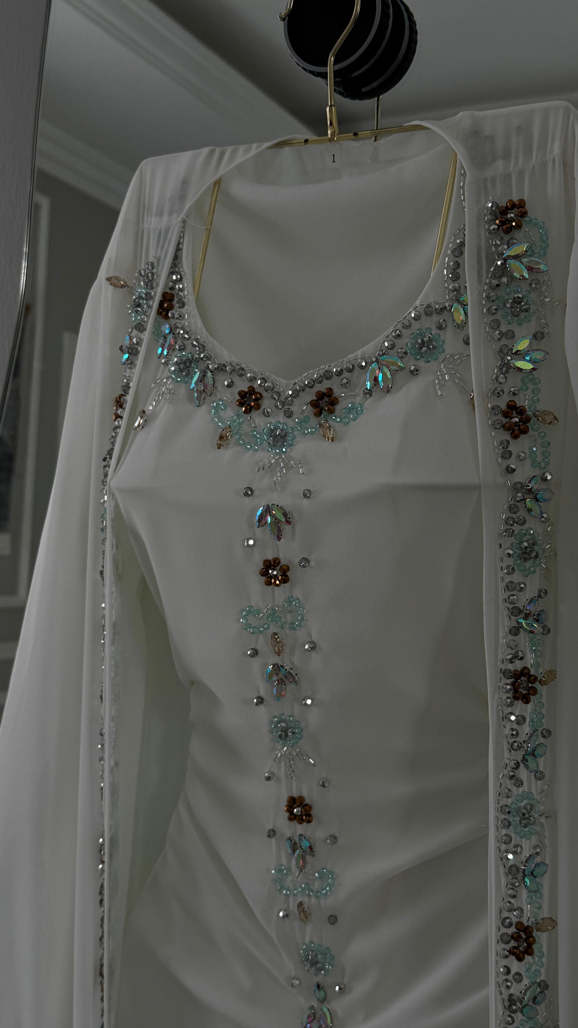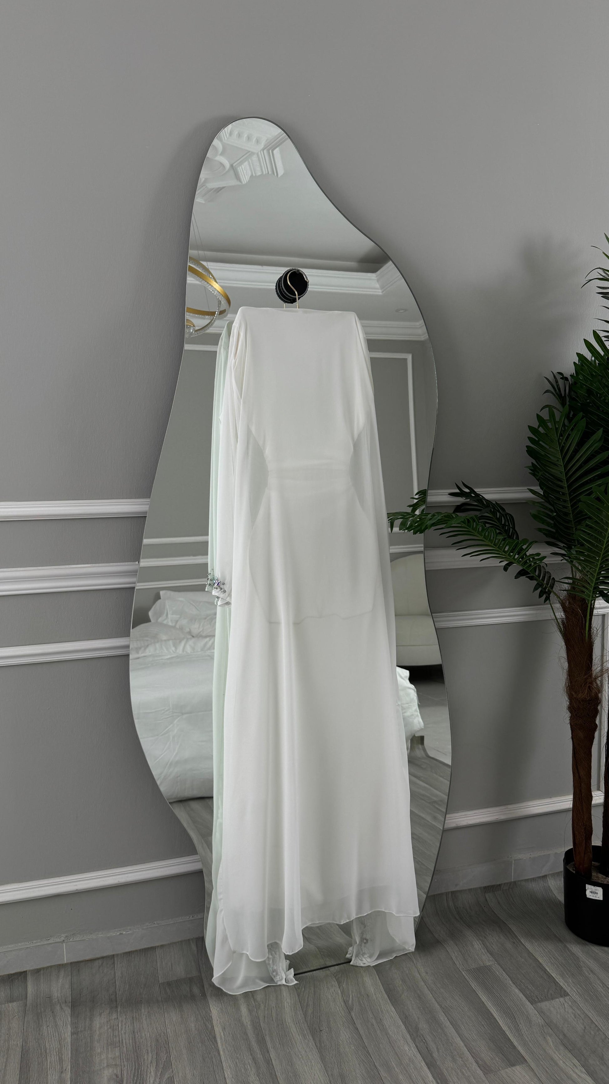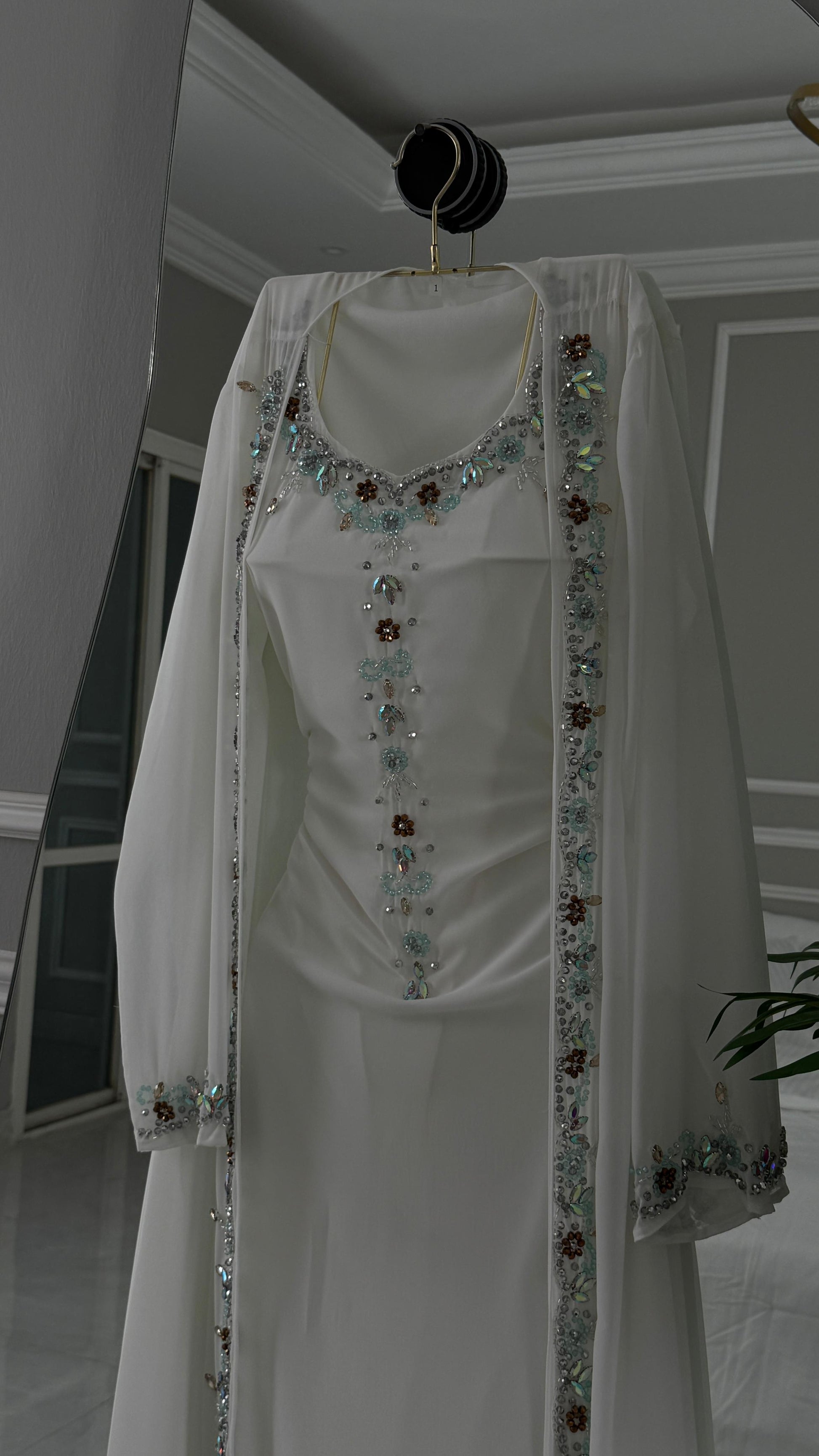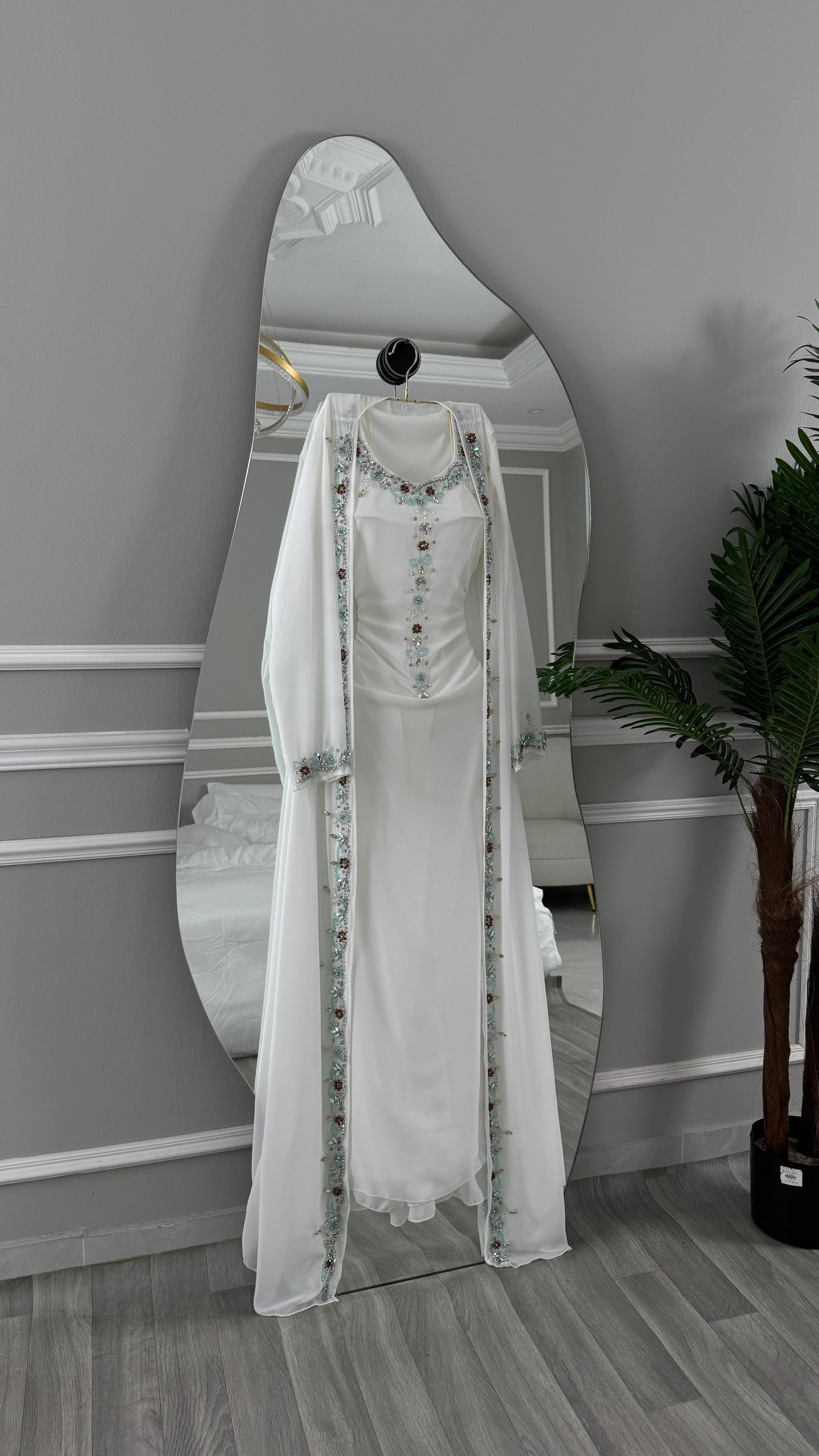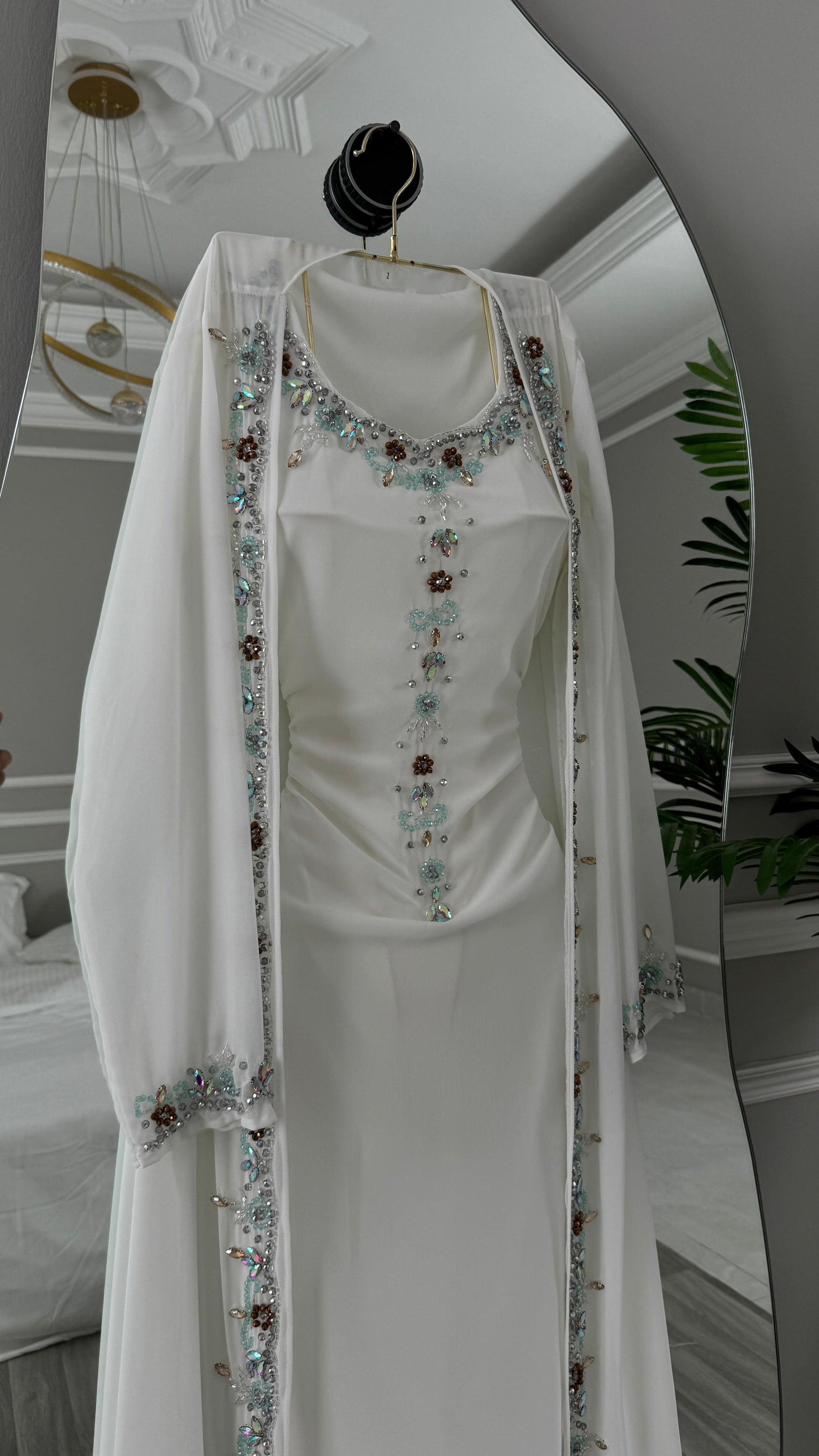 تمثل هذه الجلابية الأبيض الأناقة البسيطة مع لمسات من الفخامة، مما يجعله اختيارًا مثاليًا للمناسبات الخاصة.