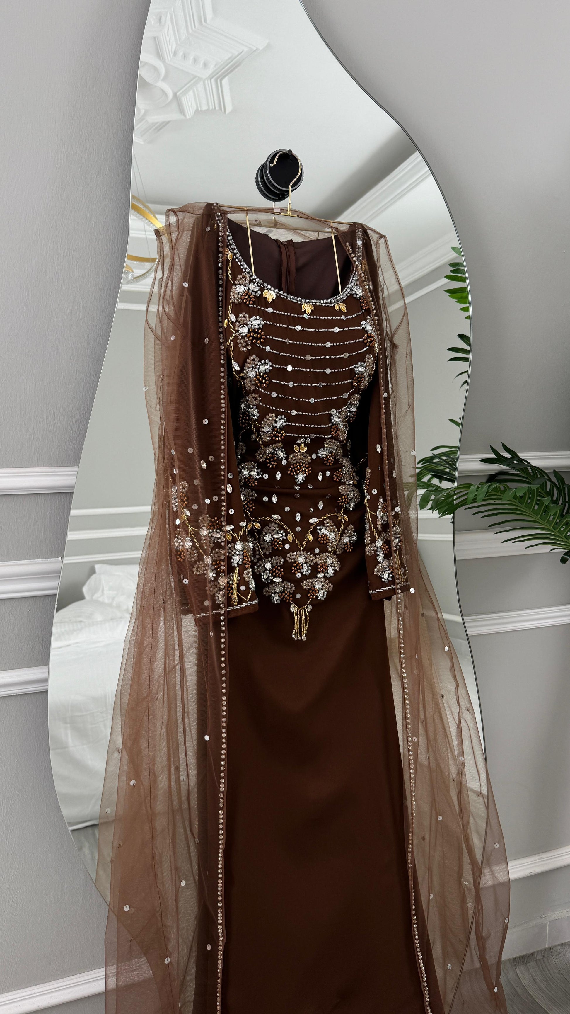 هذا الفستان يجسد الفخامة والأناقة، مما يجعله مثاليًا للمناسبات الخاصة التي تتطلب مظهرًا مميزًا.