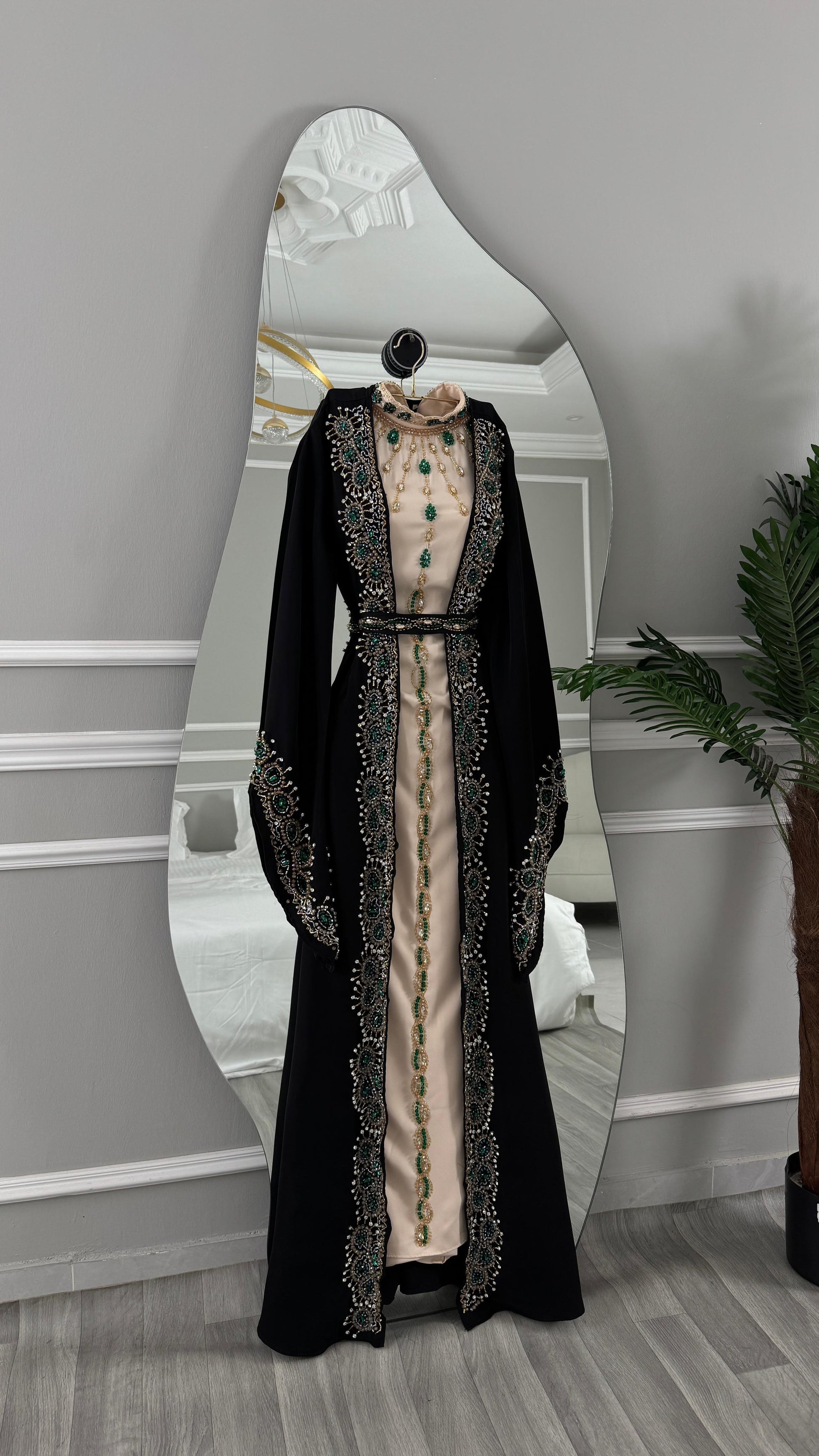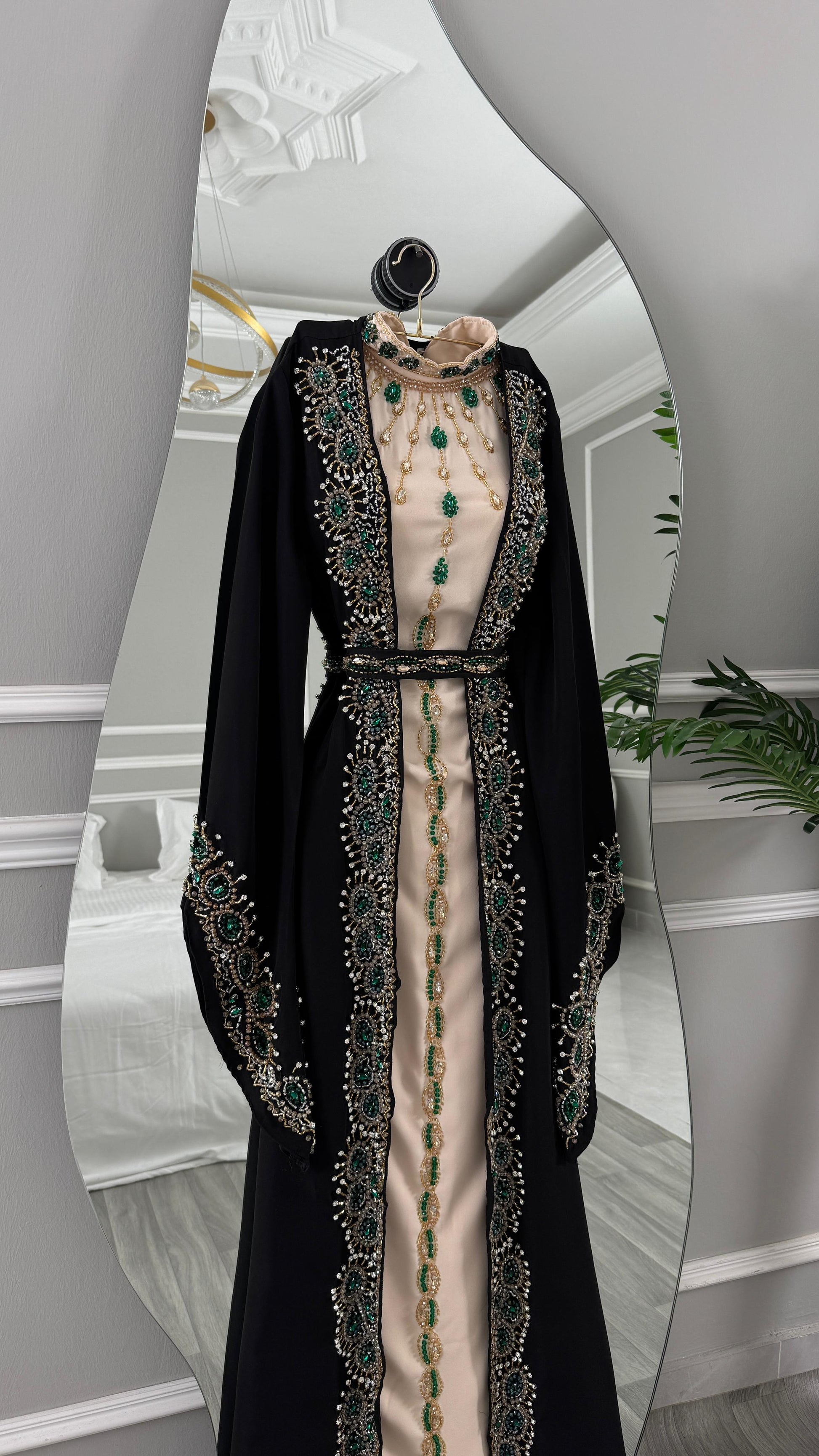 هذي الجلابية تجمع بين الأناقة التقليدية والعصرية، مما يجعله خيارًا مثاليًا للمناسبات الرسمية والاحتفالات.