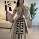 الفستان يجمع بين هدوء البيج ورصانة الكحلي، ما يخلق توازناً بصرياً فريداً، ويجعله خياراً مثالياً للمناسبات الراقية و السهرات المميزة.
