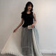 يتميز الجزء العلوي باللون الأسود بتصميم أنيق لإبراز القوام، ويأتي الجزء السفلي باللون الأبيض، مما يمنح الفستان توازنًا جذابًا بين الجرأة والنعومة.