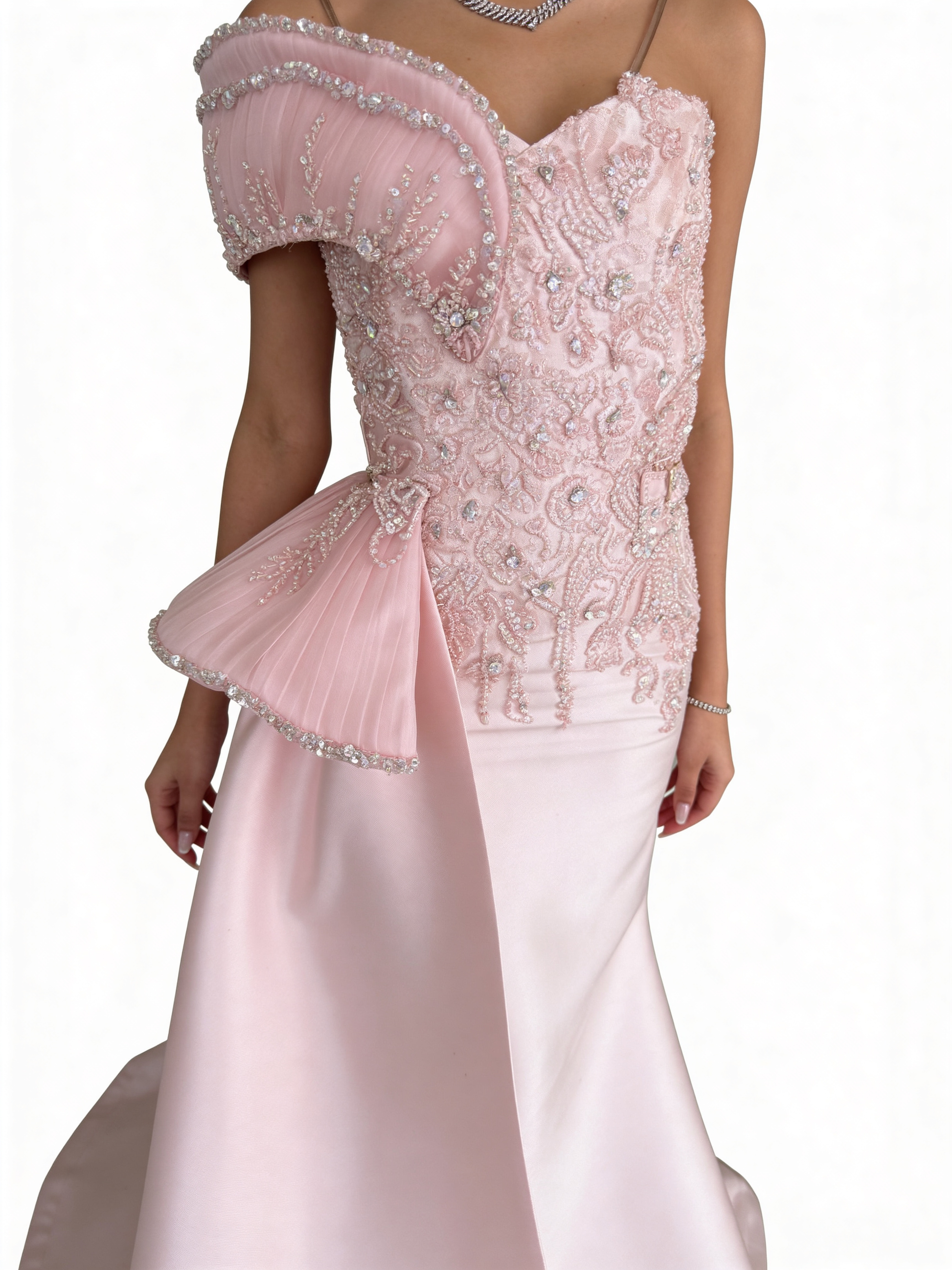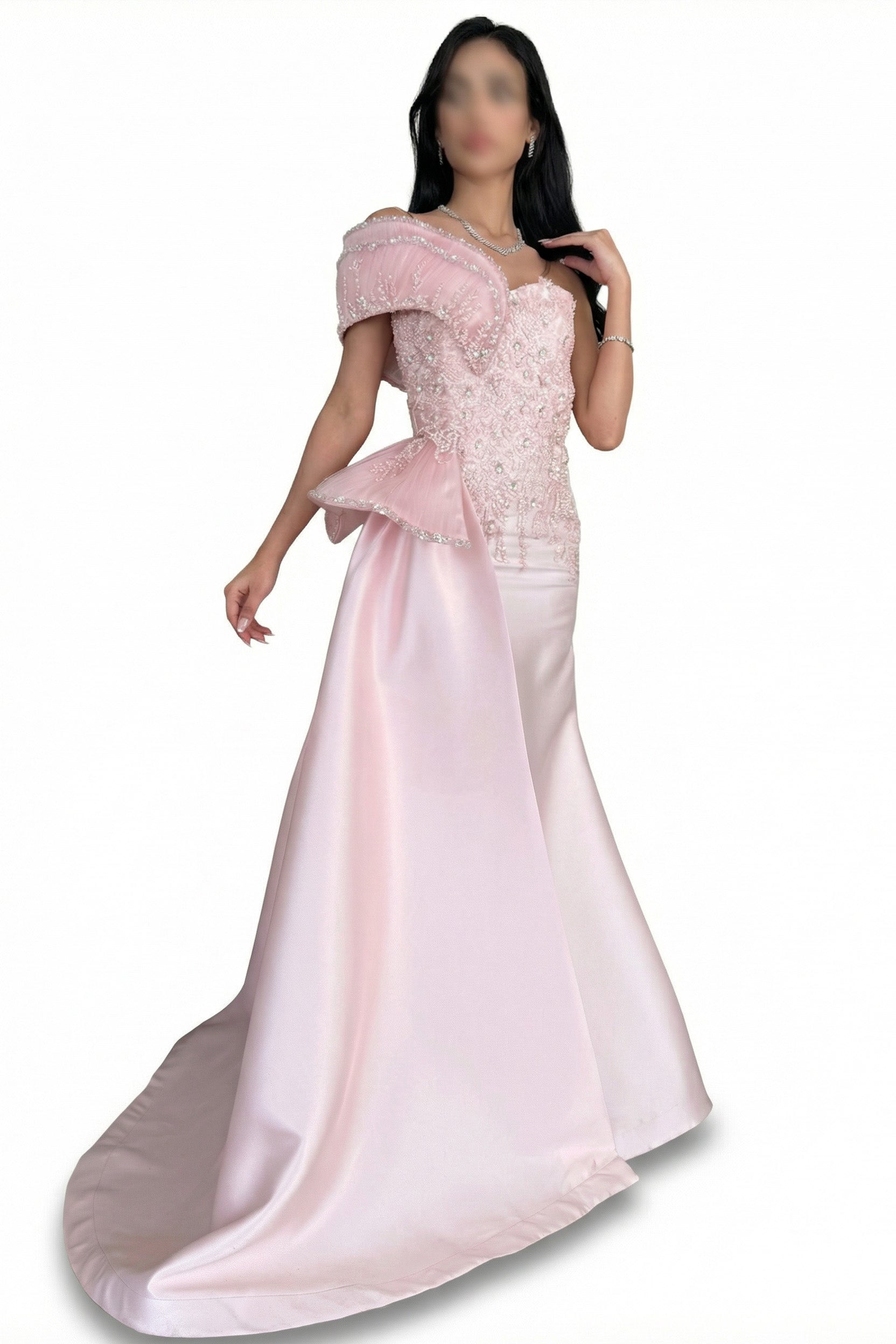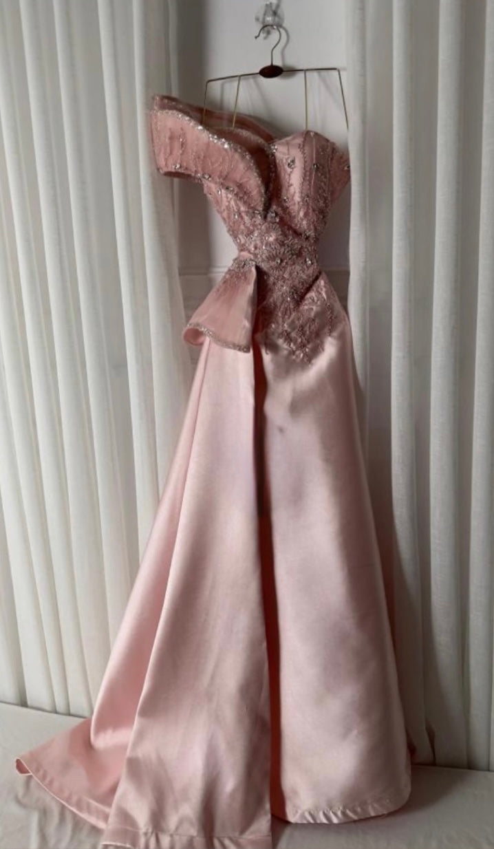 ارتقي بإطلالتك مع هذا الفستان السهرة الفخم الذي يجمع بين الأناقة والجرأة. يأتي بلون وردي فاتح جذاب، مما يجعله الخيار المثالي لكل مناسبة خاصة. تصميمه الفريد يبرز جمال قوامك ويمنحك إطلالة لا تُنسى.