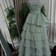 - *تصميم راقٍ:* يتميز الفستان بتصميمه الفريد والمبتكر، مع تفاصيل رائعة من التول المتعدد الطبقات، مما يمنحك لمسة من الفخامة والجمال.