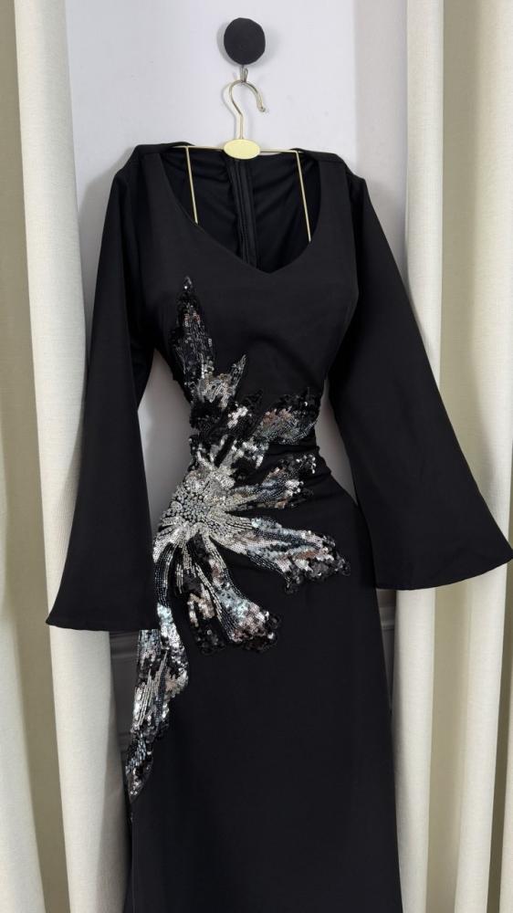 تألّقي بإطلالة راقية تخطف الأنظار مع هذا الفستان الأسود الساحر المصمم بعناية ليتناسب مع أمسياتك الخاصة والمناسبات الفاخرة.
