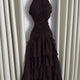 الجزء السفلي من الفستان يتميز بتصميم طبقي من الشيفون المتدرج الذي ينساب برقة مع الحركة، ليمنحك لمسة من الرقي والنعومة في كل خطوة.