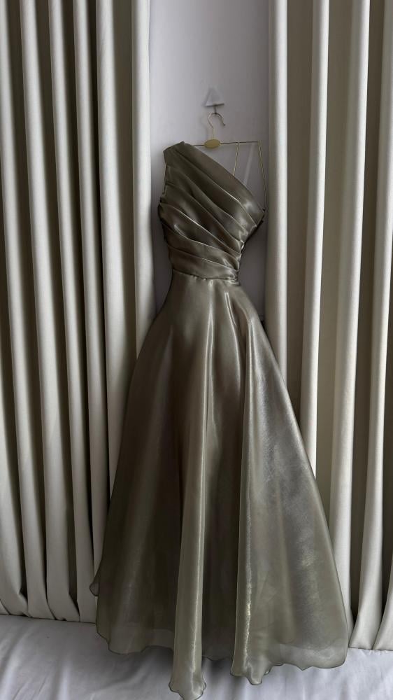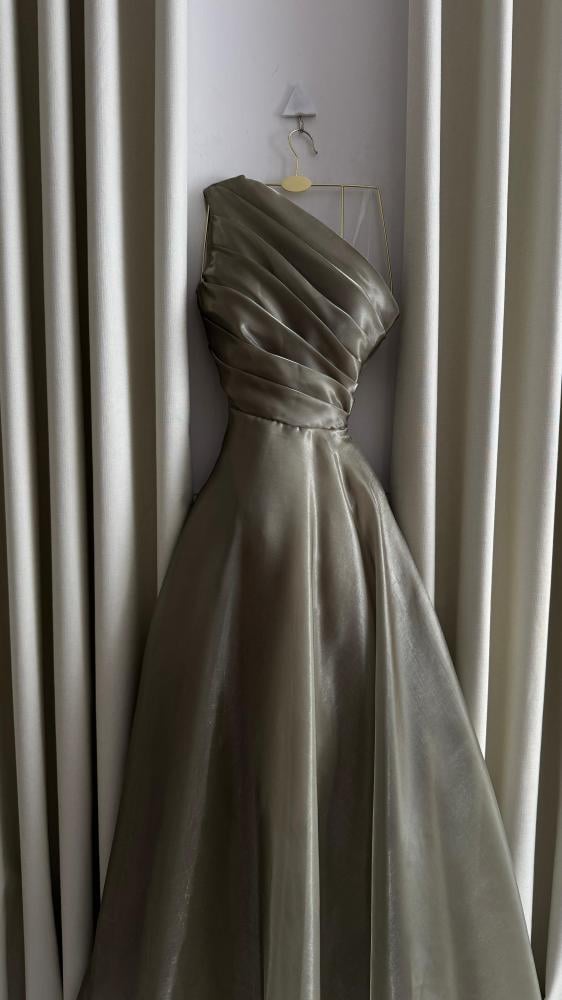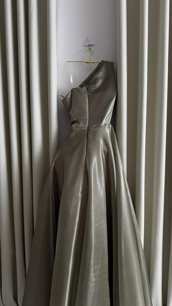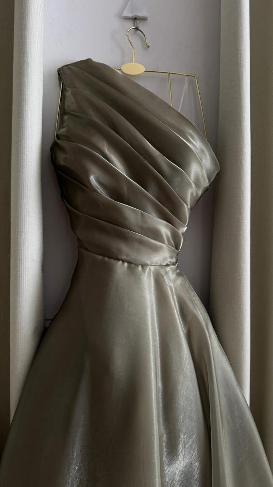 تألقي بجمال فريد مع هذا الفستان الساحر الذي يتميز بتصميمه الرقيق ولونه الأخضر الزيتوني المائل للرمادي، مما يمنحك إطلالة هادئة ومميزة.