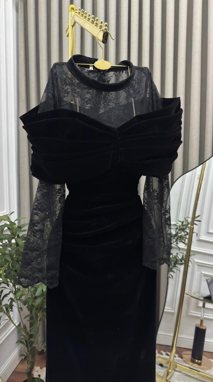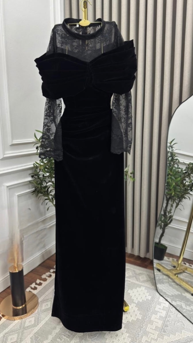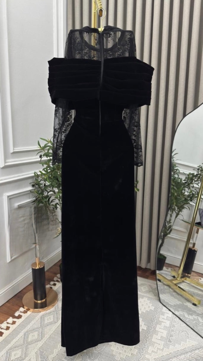 **فستان سهرة أنيق بلون أسود بلمسات عصرية**