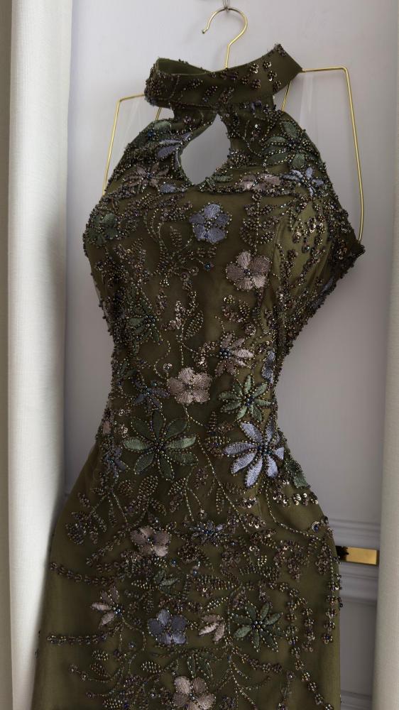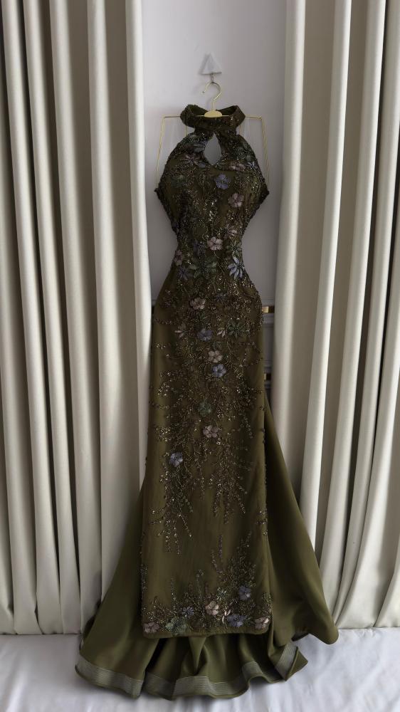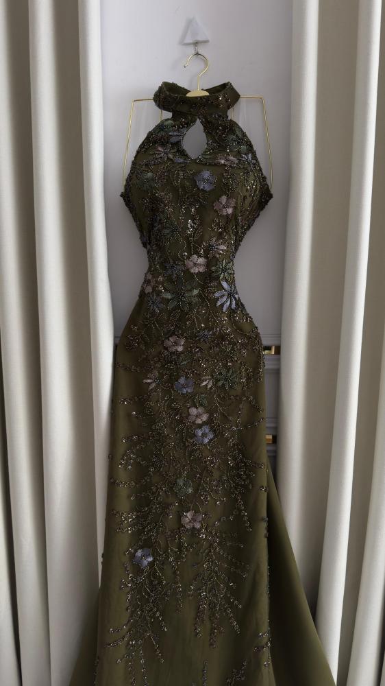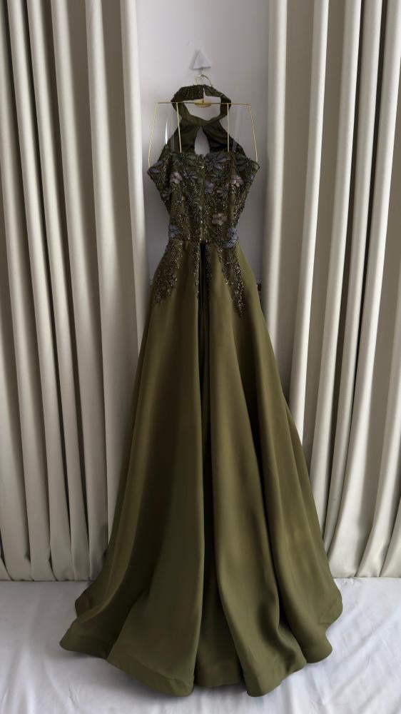 تألقي بإطلالة استثنائية مع هذا الفستان الرائع بلون الزيتون، المصمم خصيصًا لتلبية ذوقك الرفيع في المناسبات الخاصة. يجمع هذا الفستان بين الأناقة الفائقة والتفاصيل الدقيقة، مما يجعله الخيار المثالي لحفلات الزفاف والسهرات الراقية.