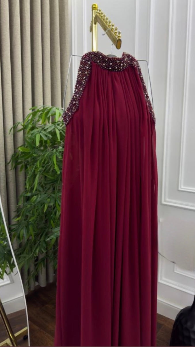 فستان سهرة أنيق بلون بورغنندي*
