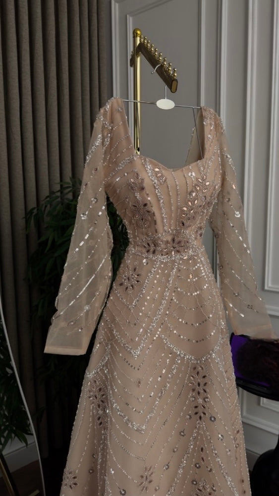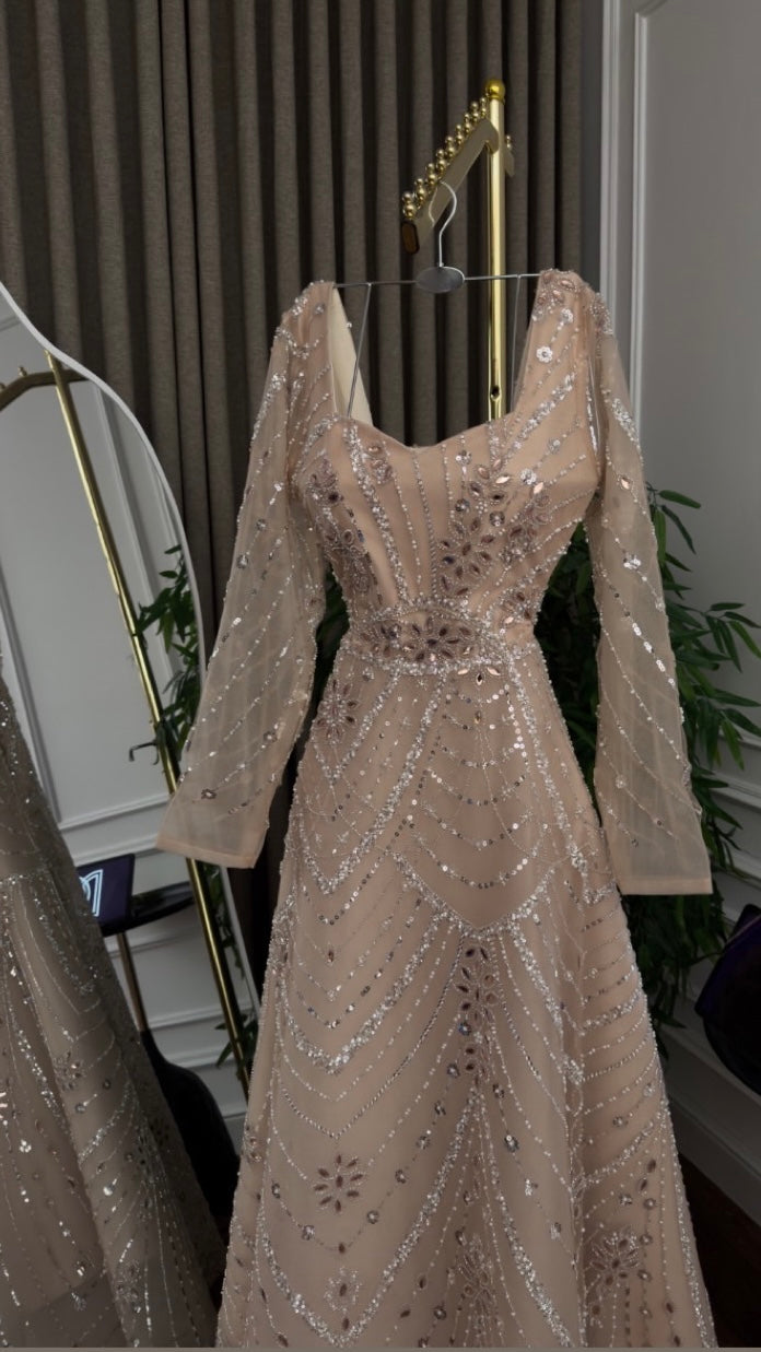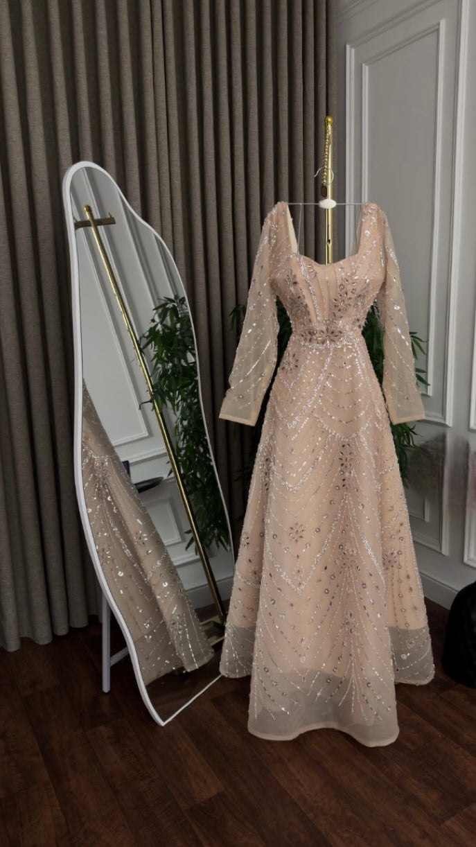 تألقي بإطلالة مُذهلة مع هذا الفستان البيج الأنيق، المصمم ليعكس أنوثتك في جميع المناسبات الخاصة.