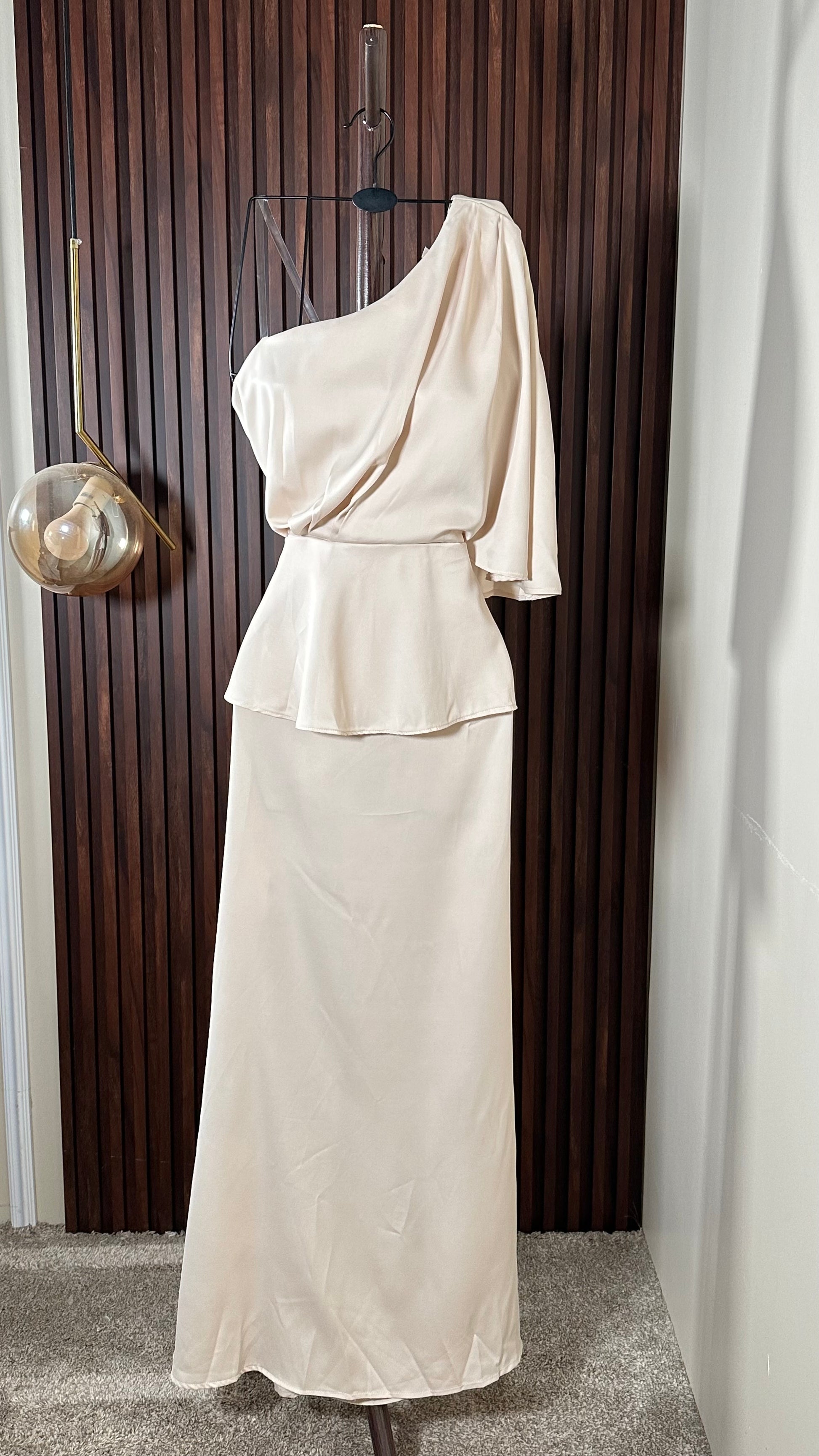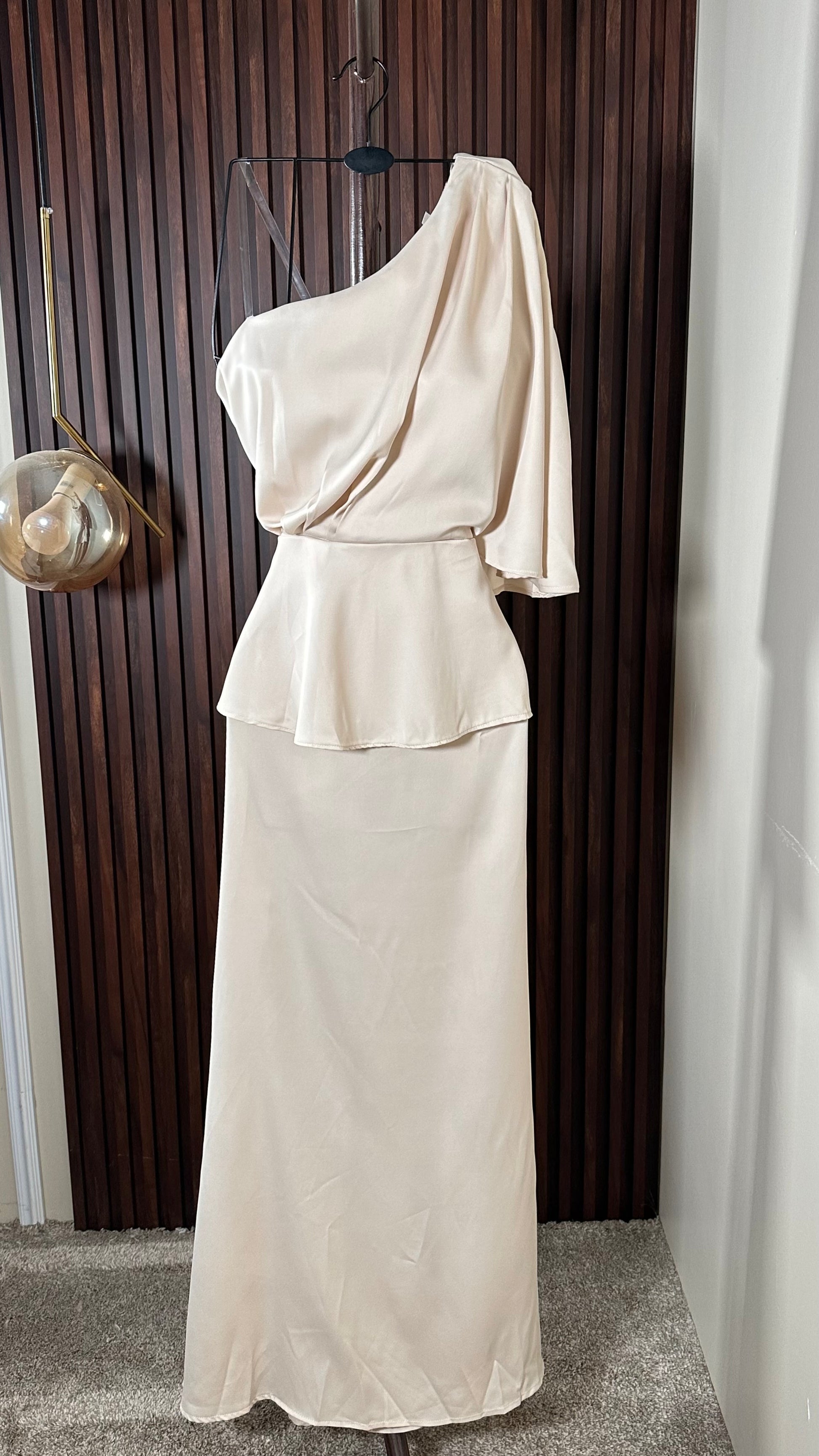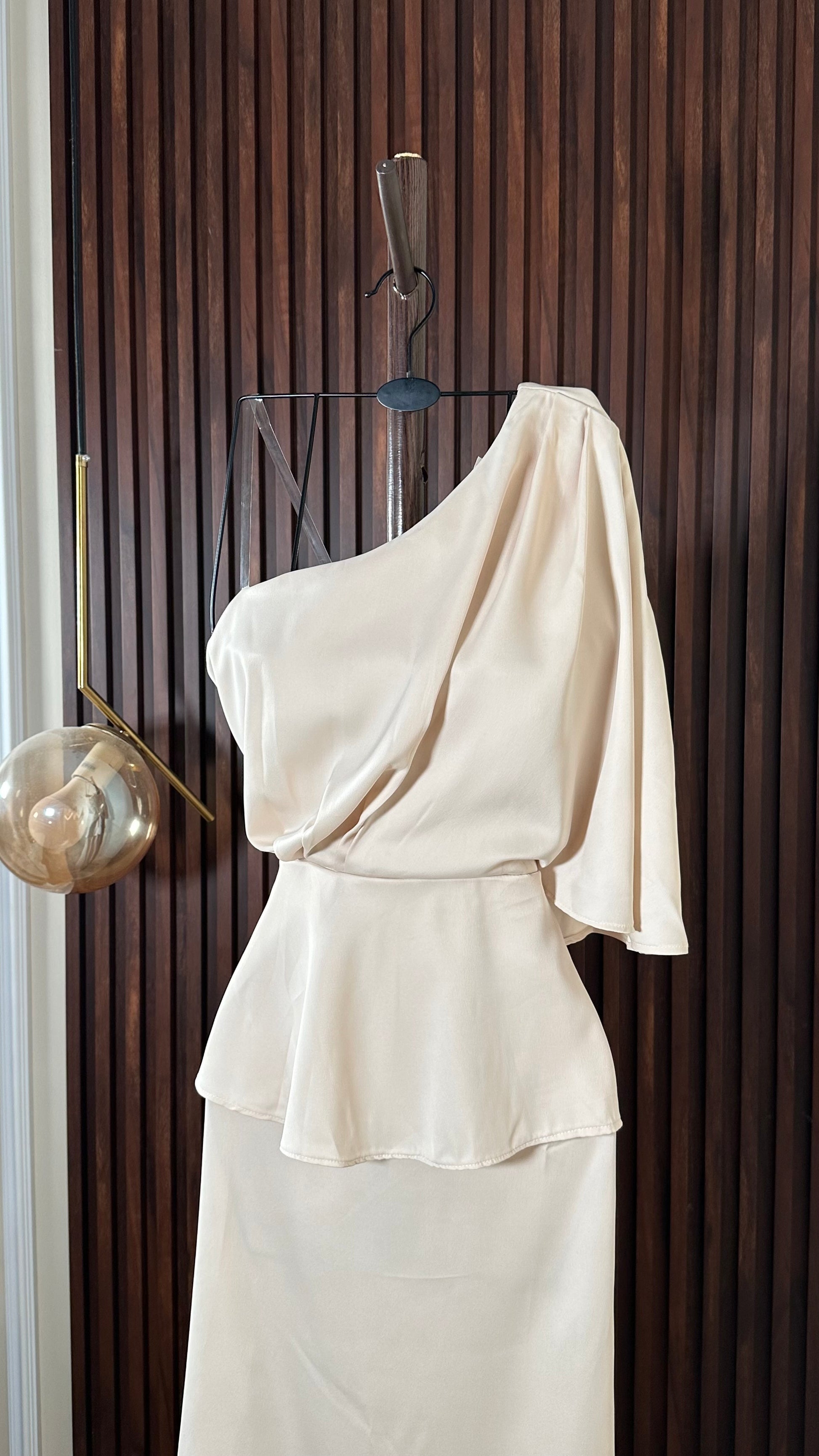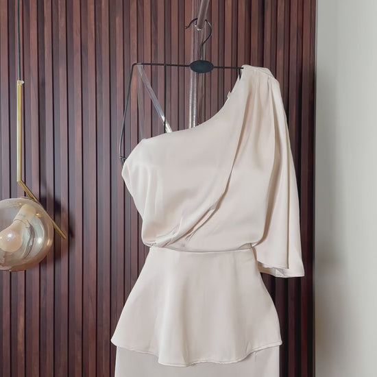 فستان كريمي بكتف واحد