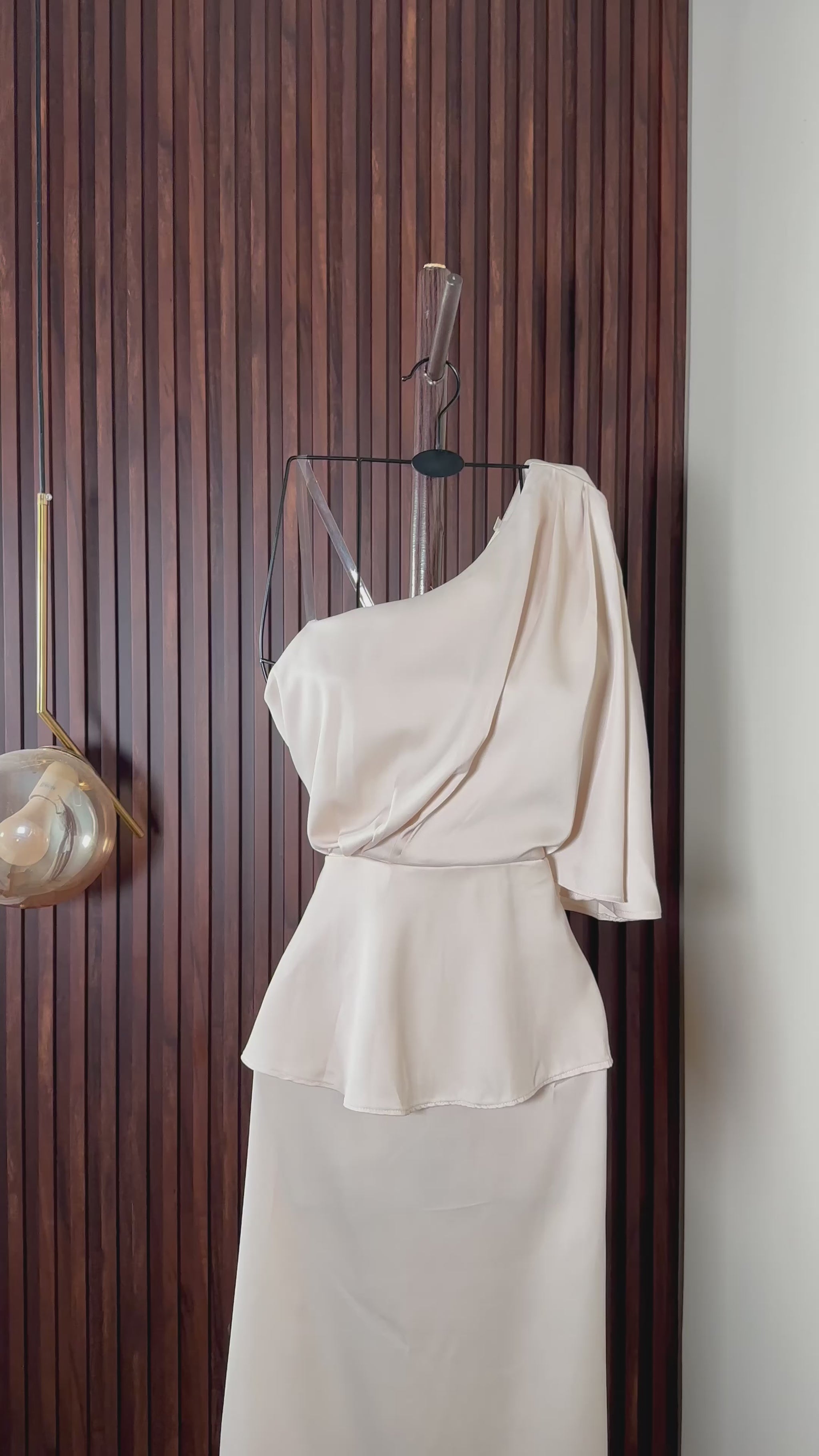 تألقي بأسلوب مميز مع هذا الفستان العصري الذي يجسد الأناقة العصرية. بلونه البيج الراقي وتصميمه الابتكاري، يُعتبر خيارًا مثاليًا لمناسباتك المختلفة.