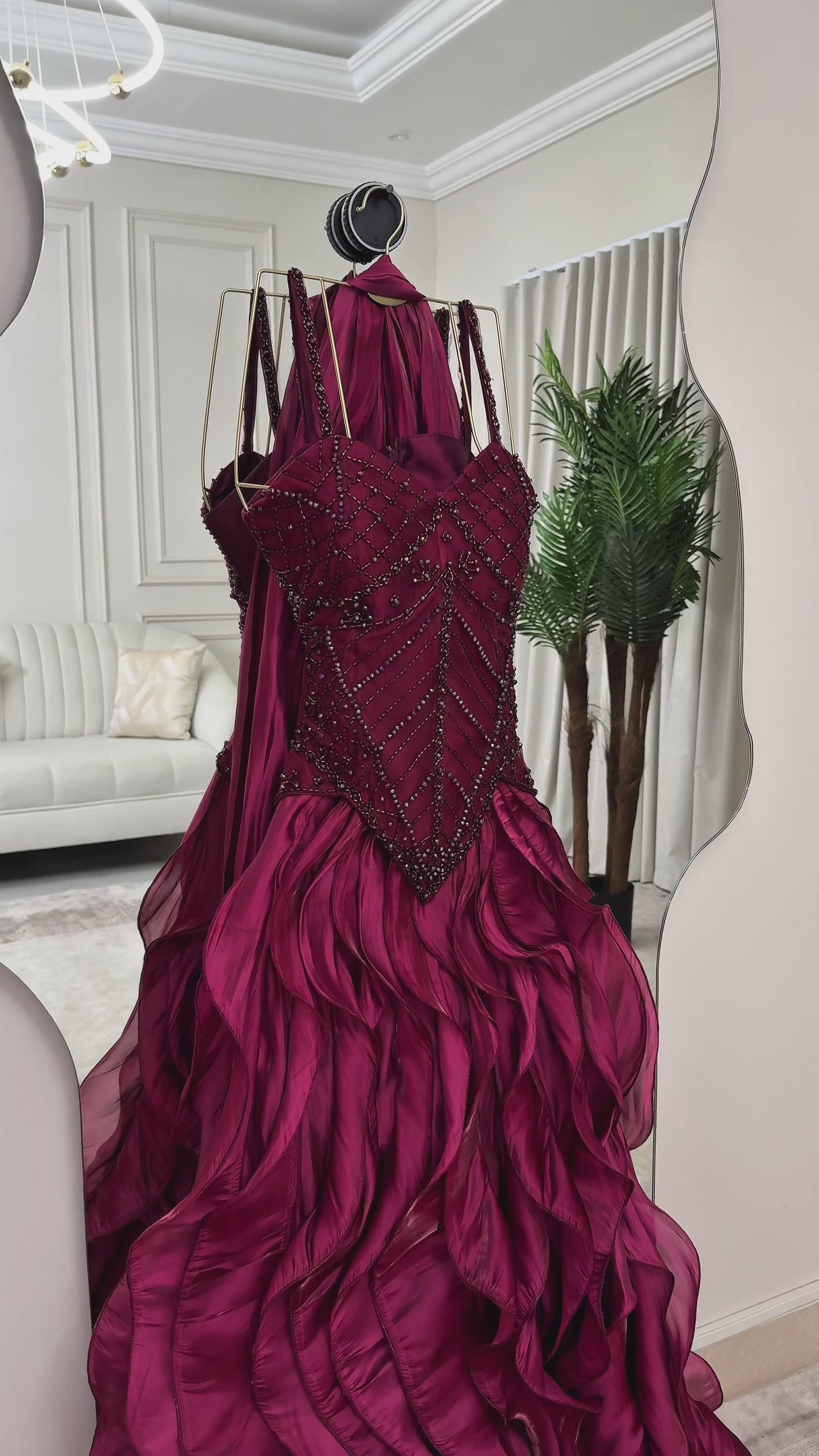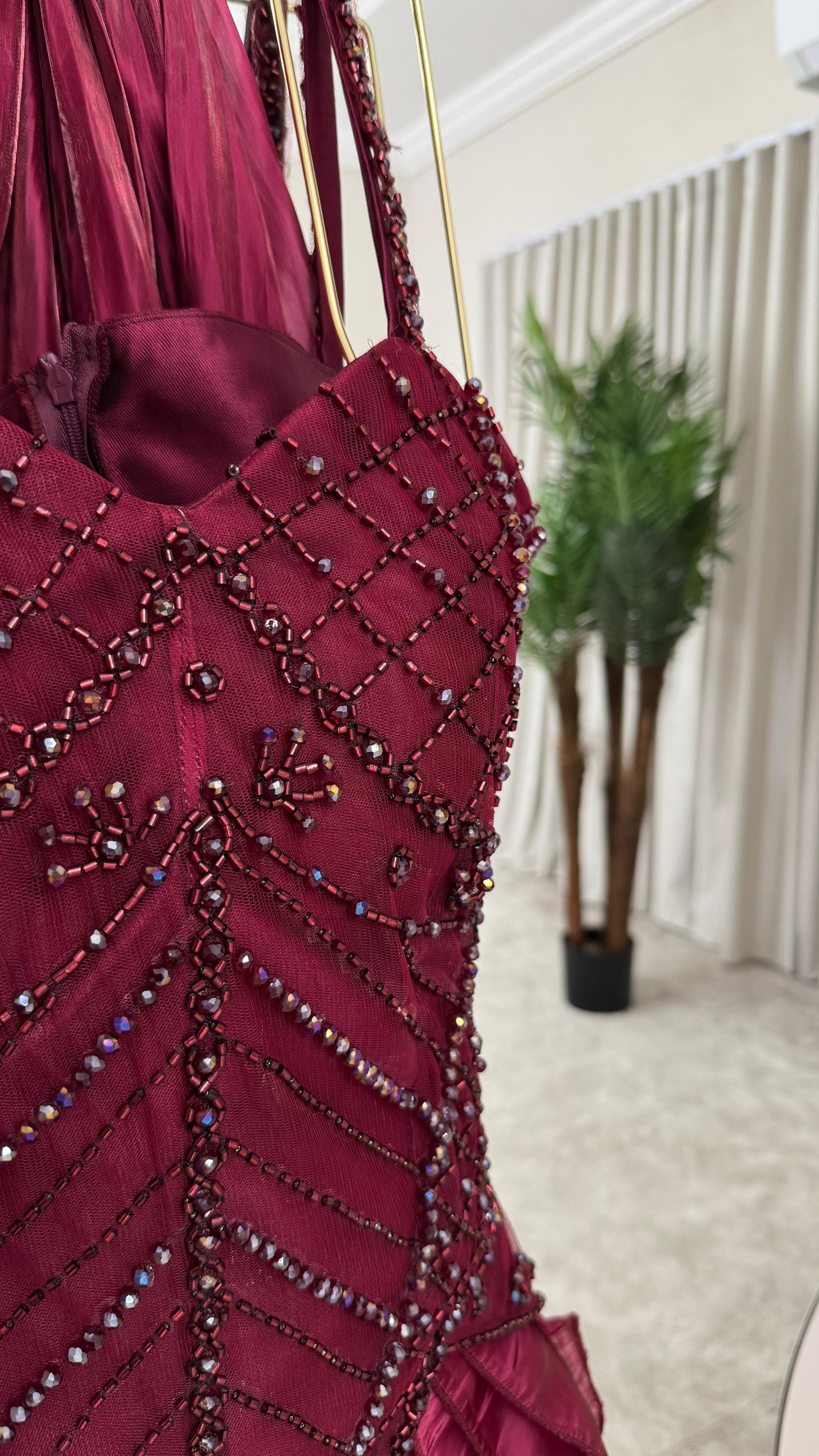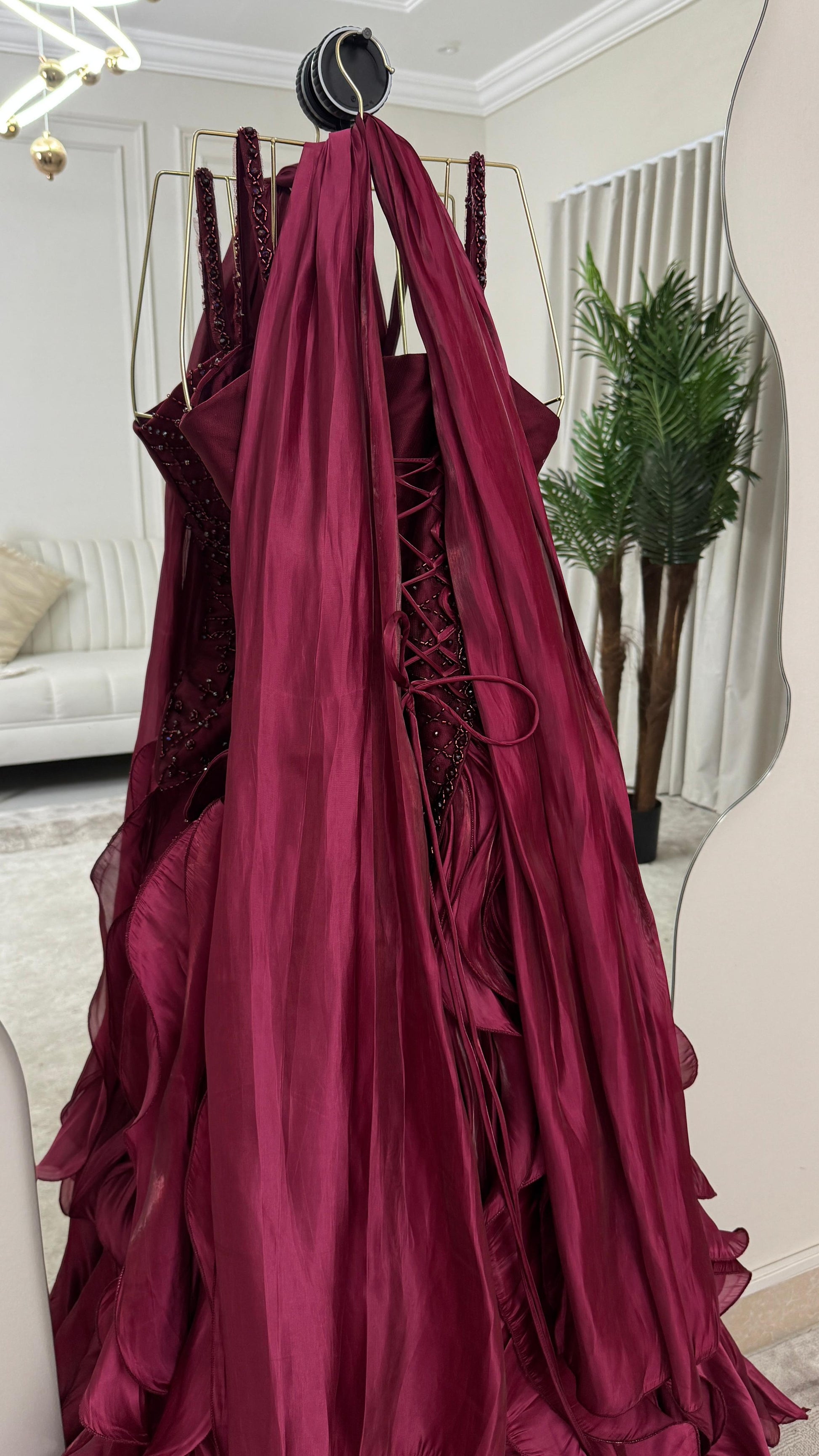 اجعلي هذا الفستان العنابي خيارك المفضل في خزانتك، وكوني نجمة كل مناسبة. تواصلي معنا لمزيد من التفاصيل حول كيفية اقتناءه!