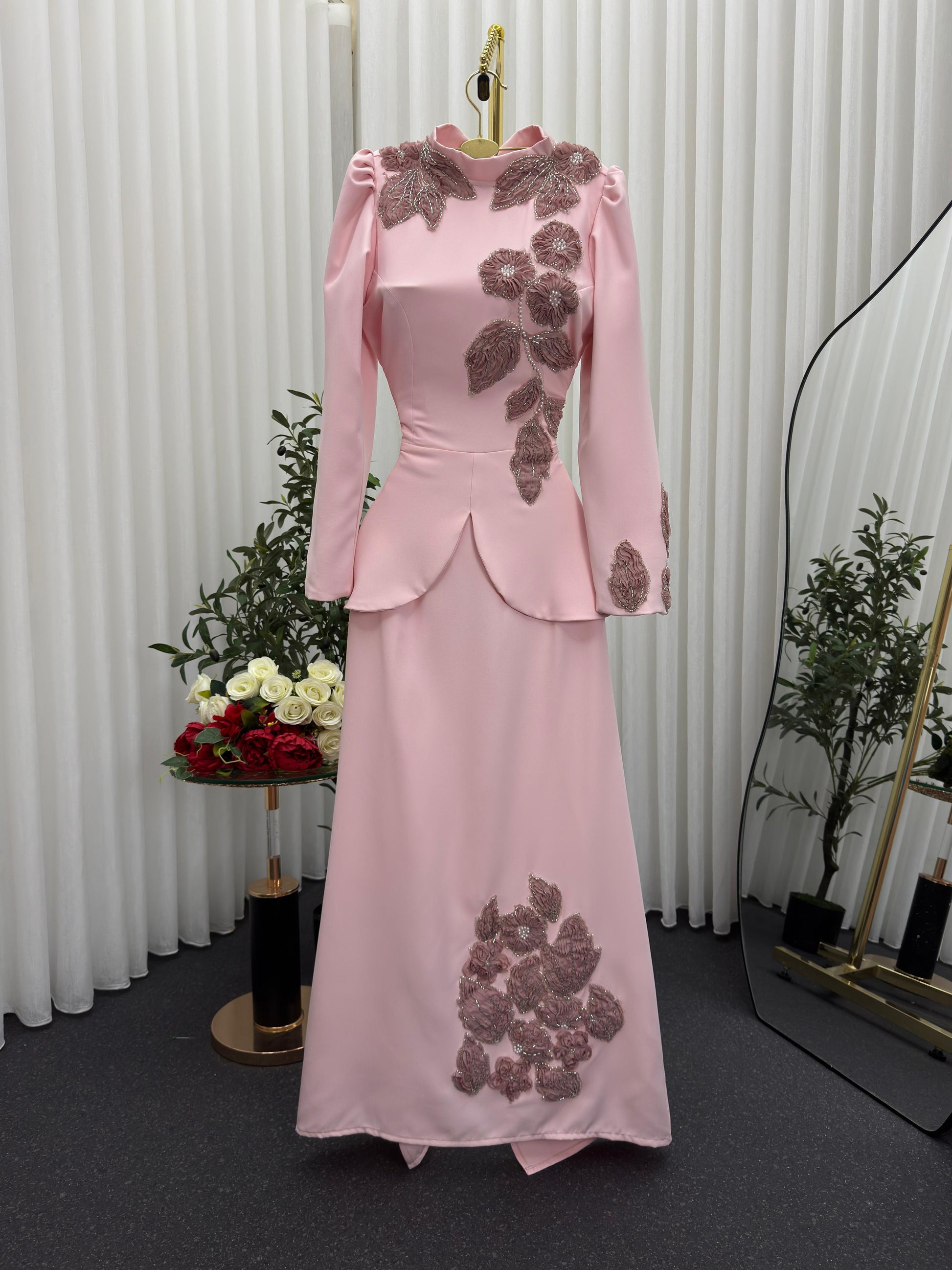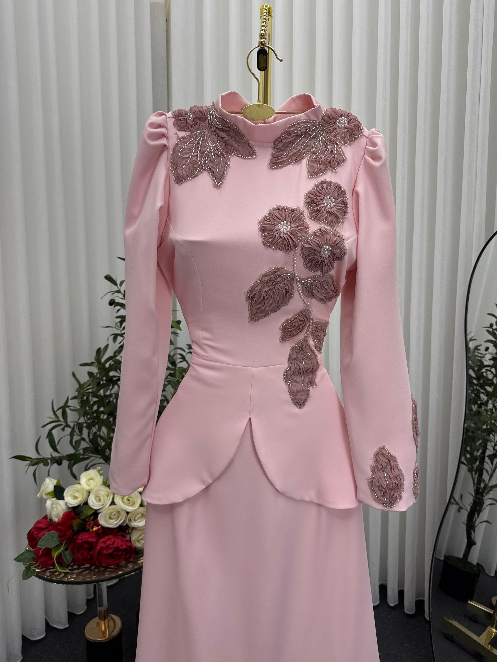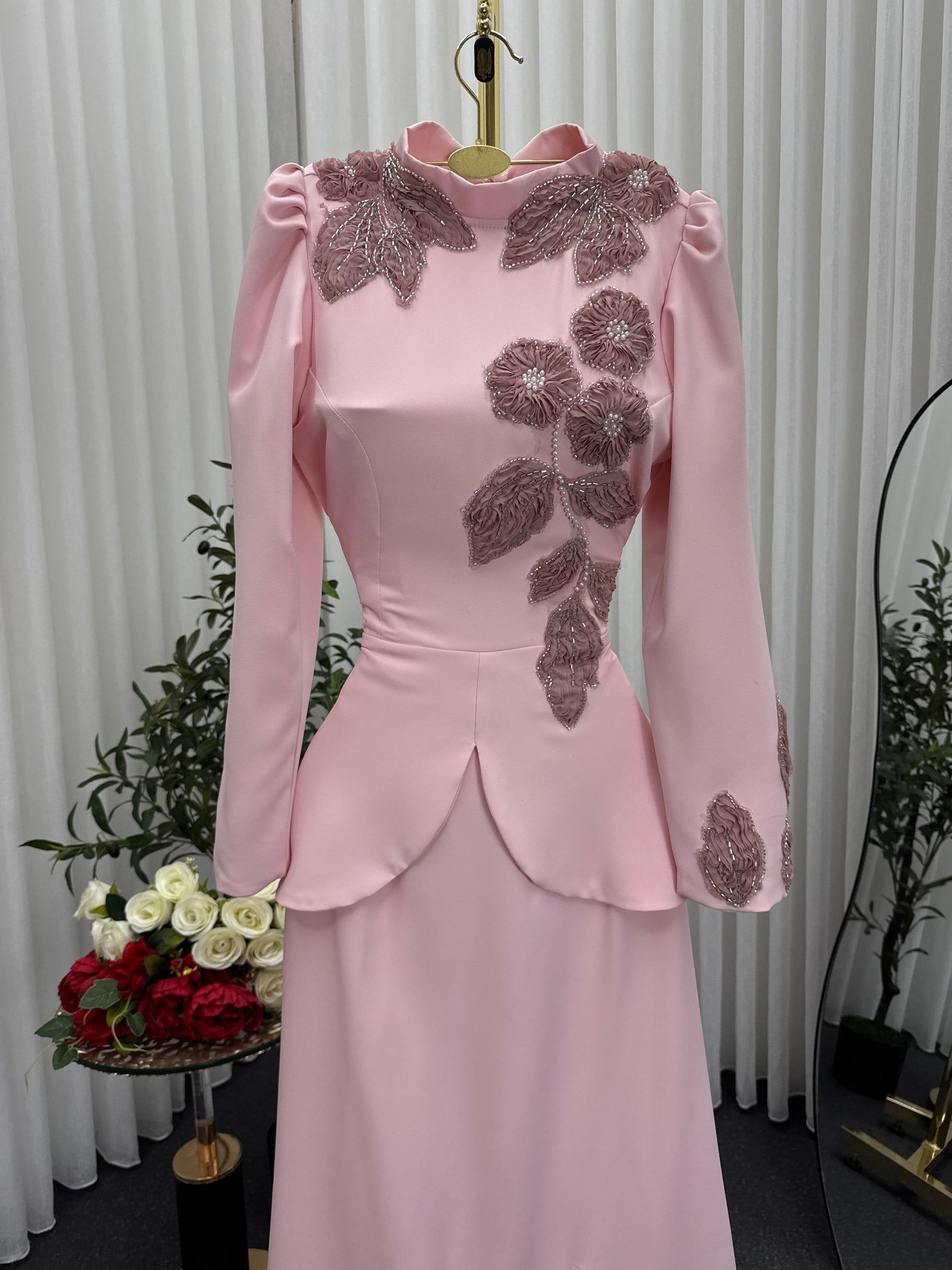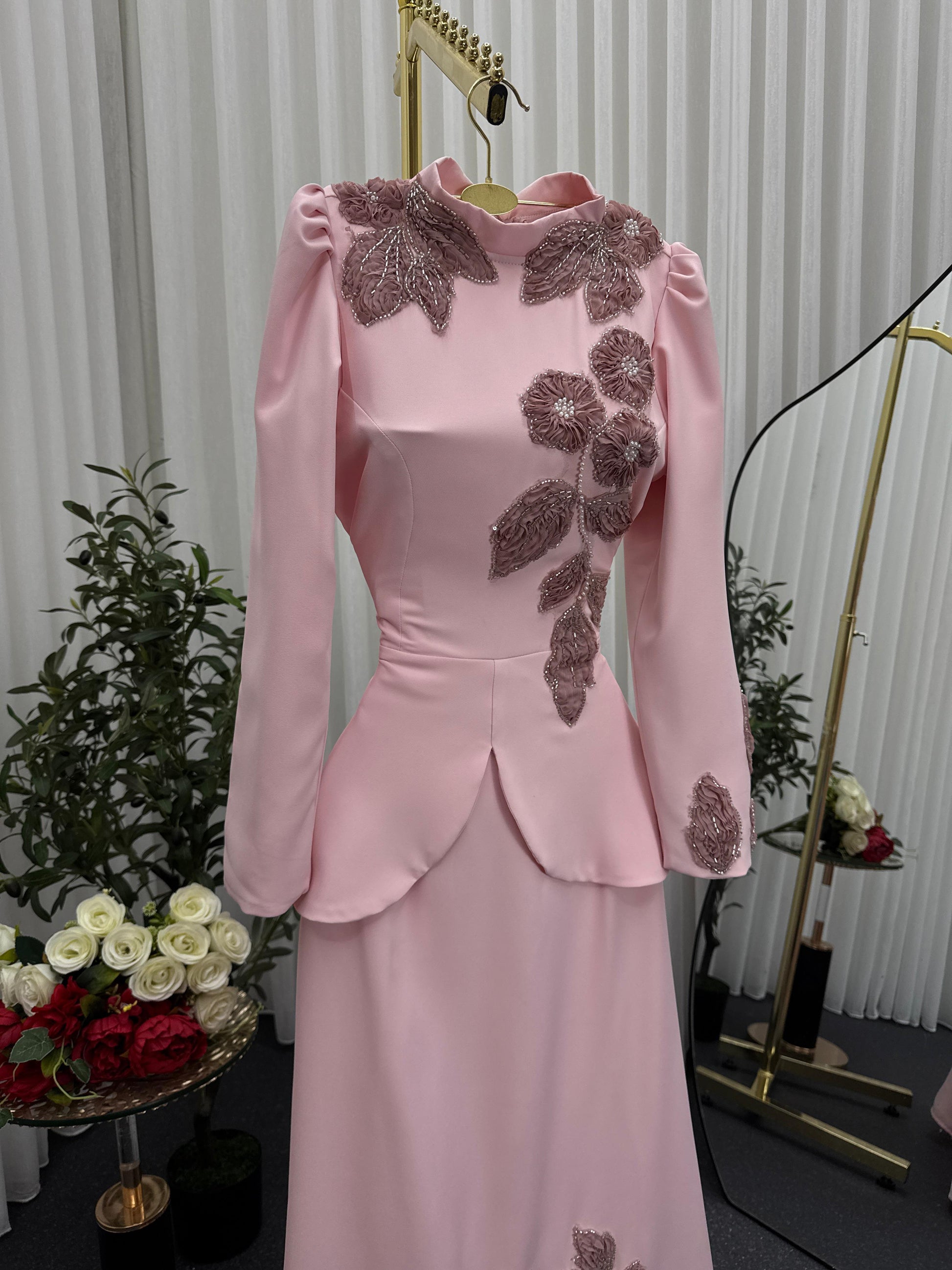 - **لون وردي ناعم**: يعكس الحيوية والأنوثة، مما يجعله مثاليًا للمناسبات الاحتفالية.