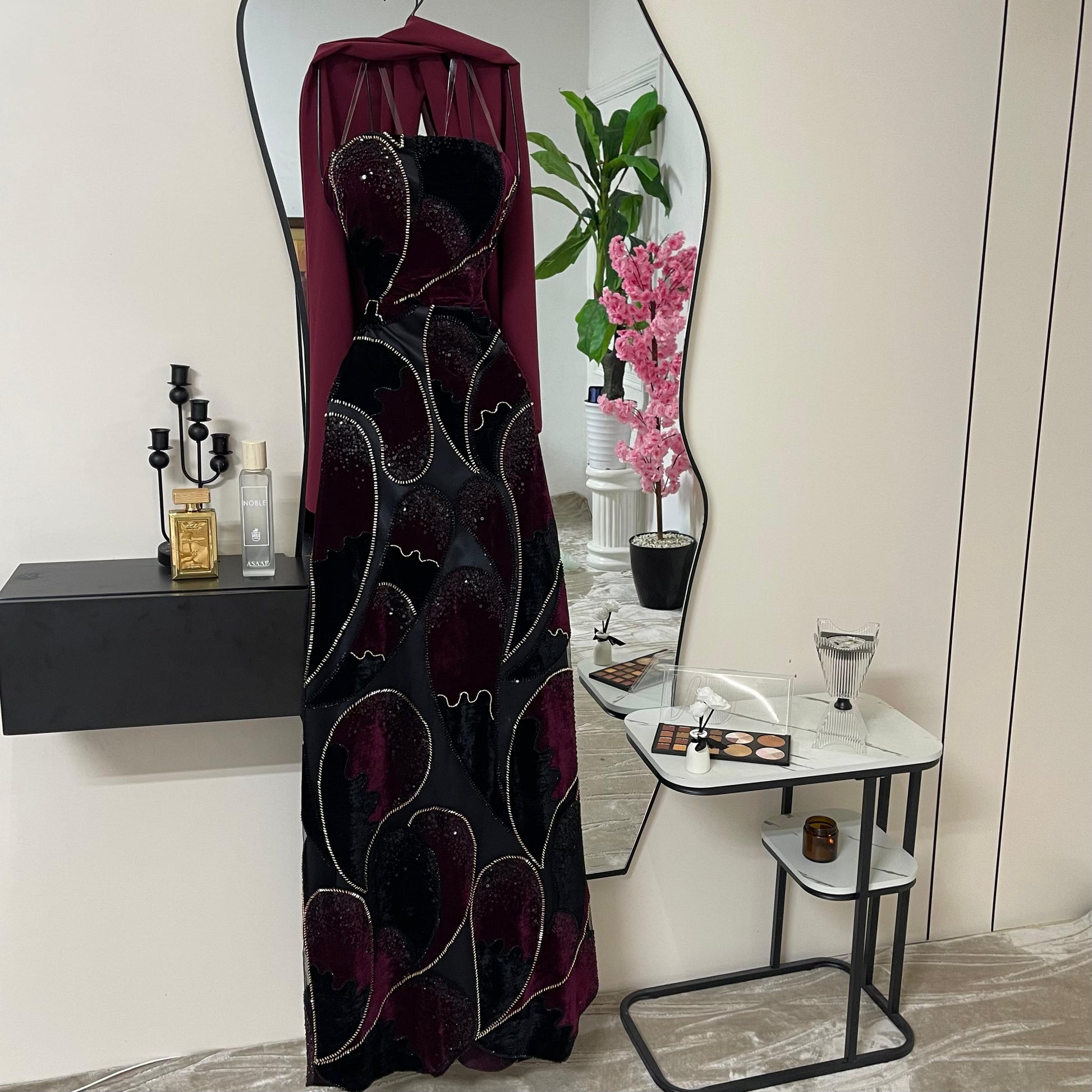 - **القماش:** مصنوع من قماش مخملي فاخر يضمن الراحة والحرية في الحركة، مما يجعله مثاليًا للإطلالات الطويلة وامتلائها بالثقة.