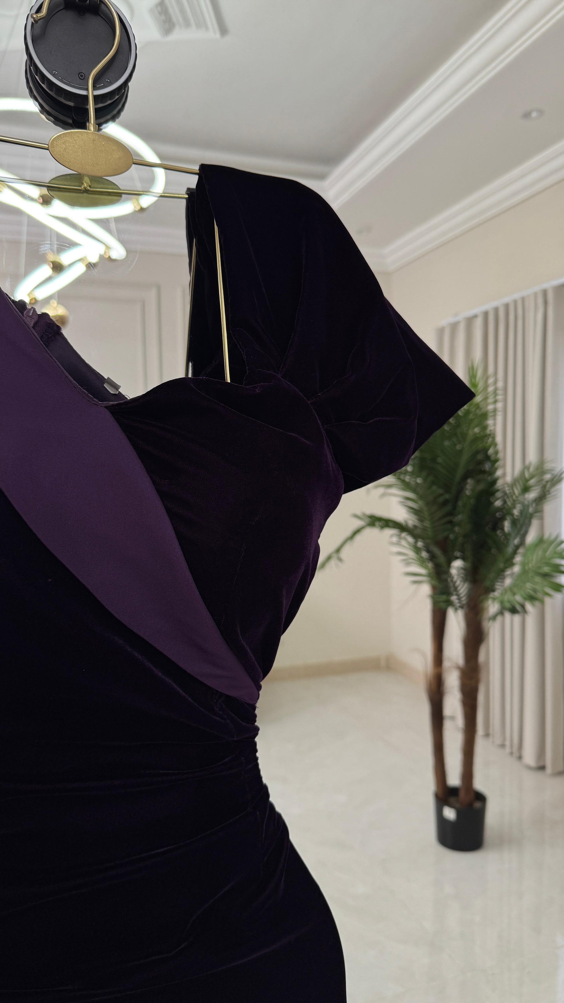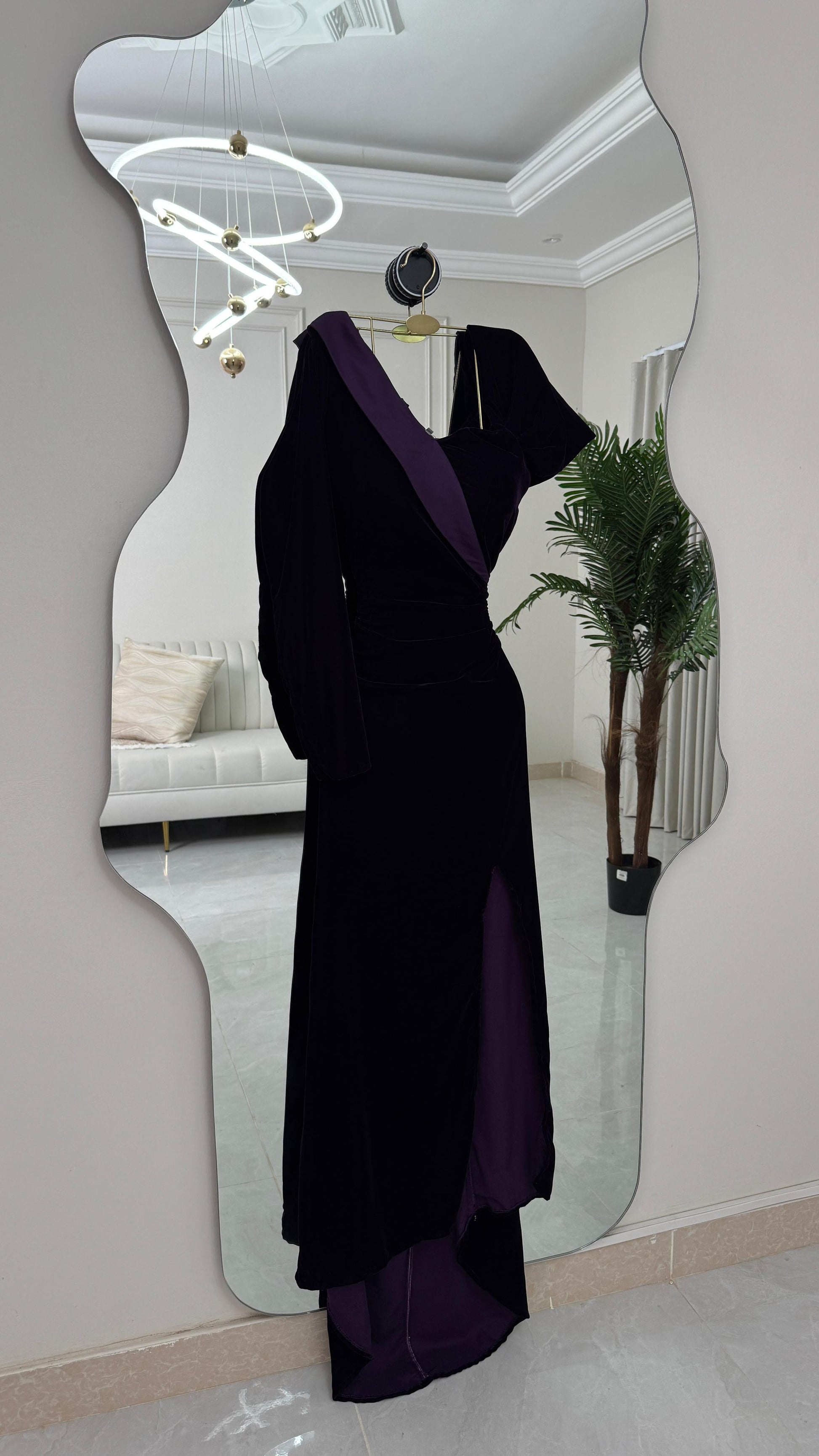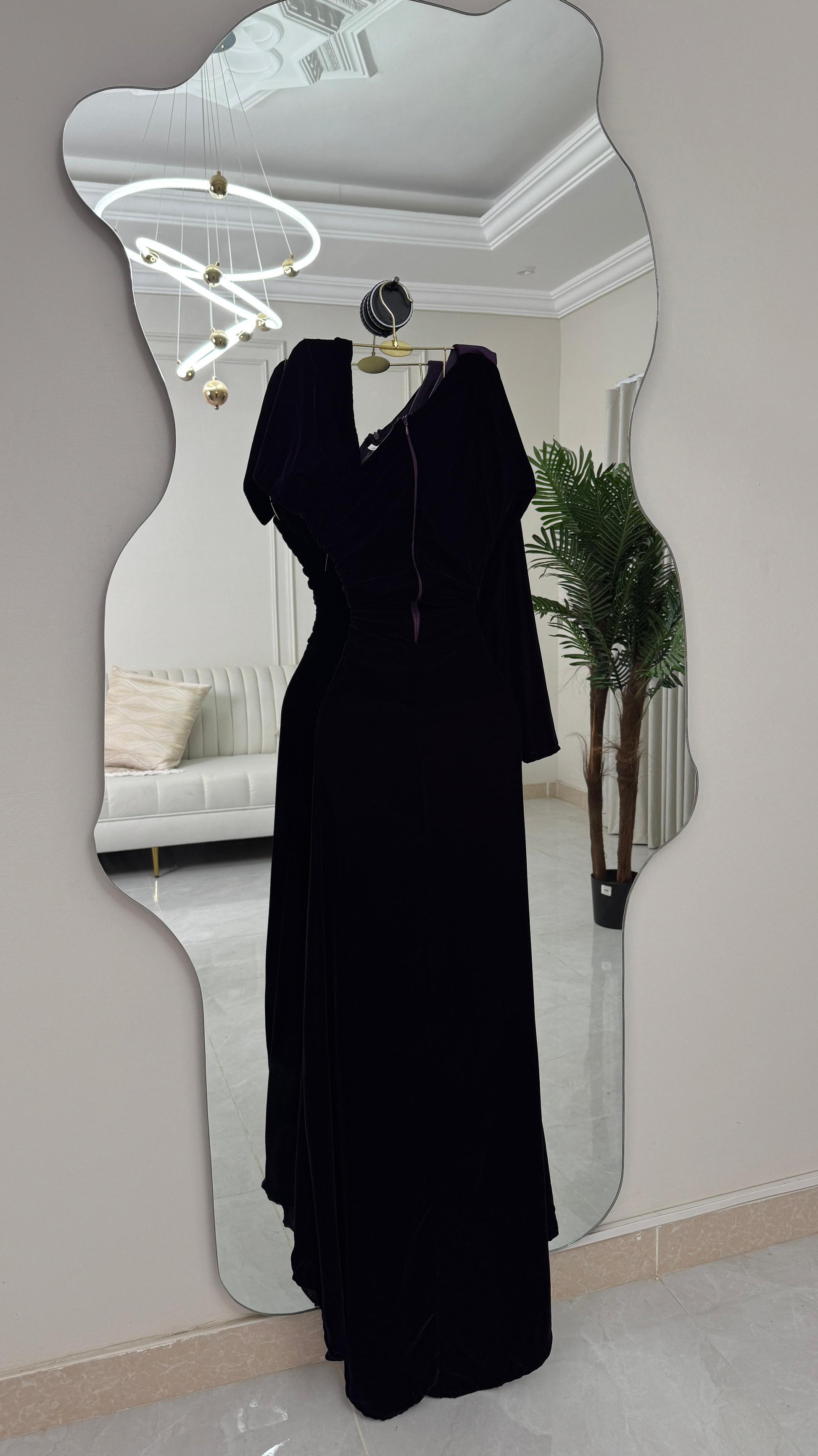 صنع من قماش المخمل الناعم الذي يمنح الفستان لمسة فاخرة ومريحة، ويُبرز جمال التصميم بالتفاصيل الراقية.