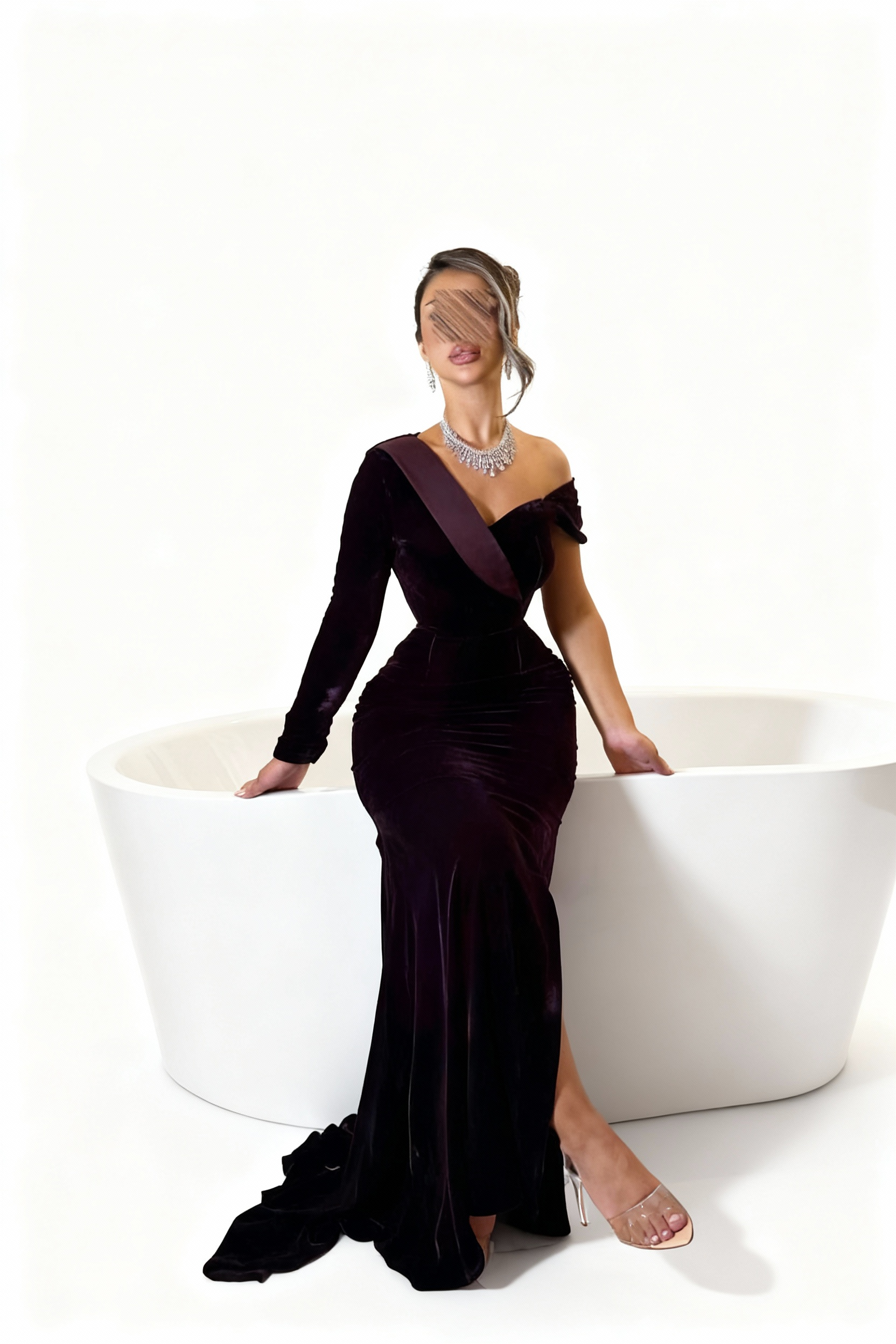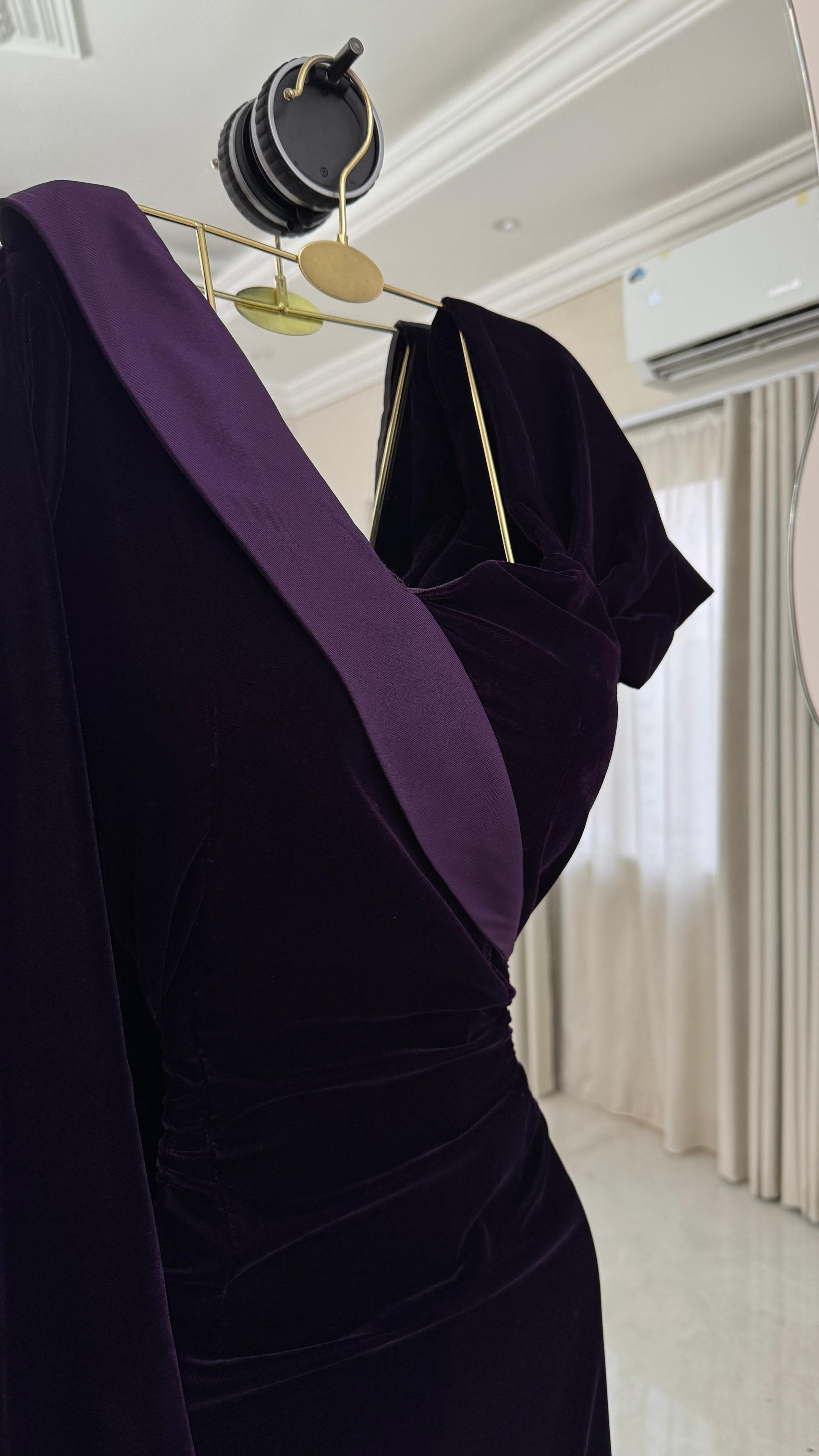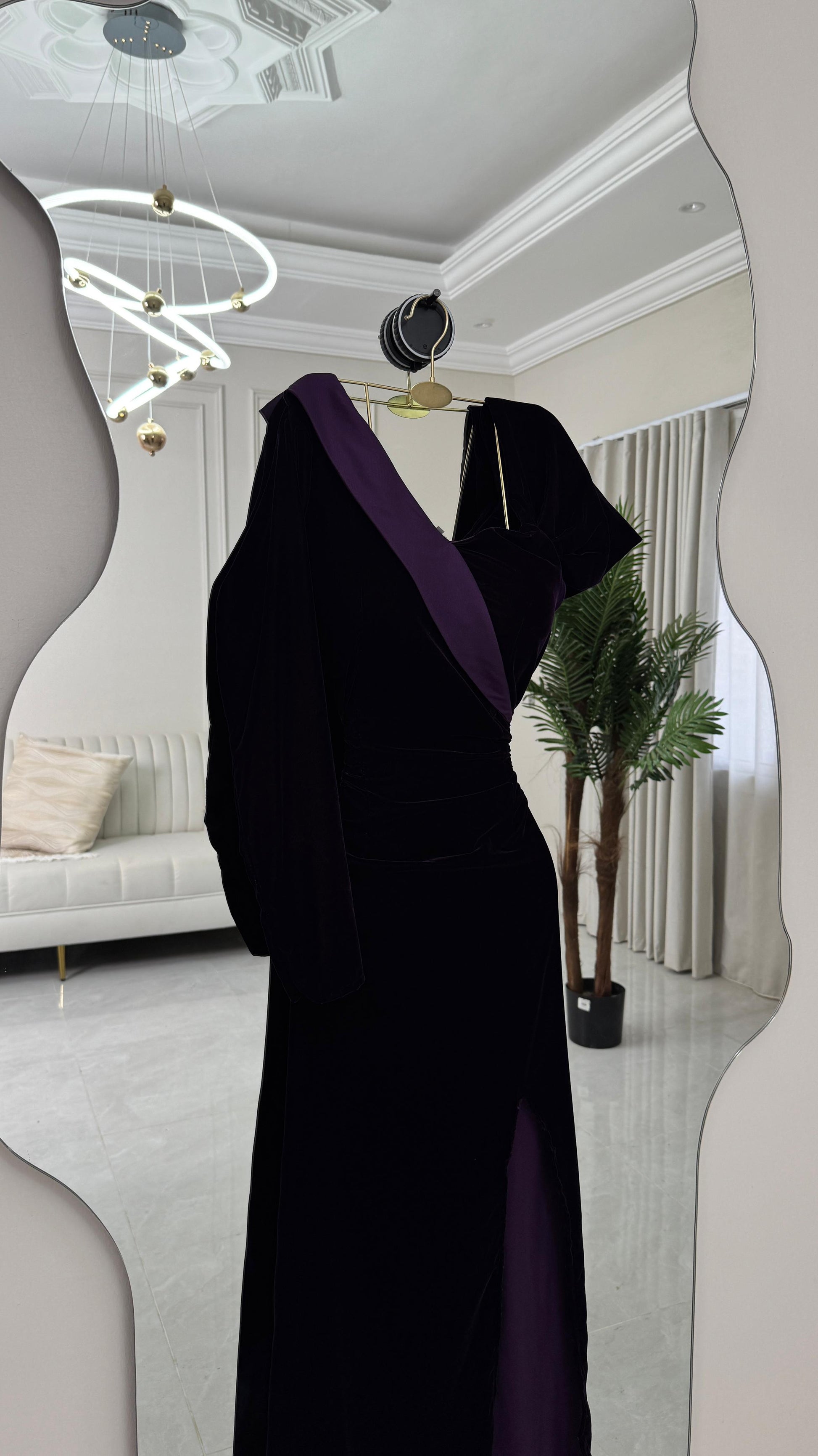 صنع من قماش المخمل الناعم الذي يمنح الفستان لمسة فاخرة ومريحة، ويُبرز جمال التصميم بالتفاصيل الراقية.