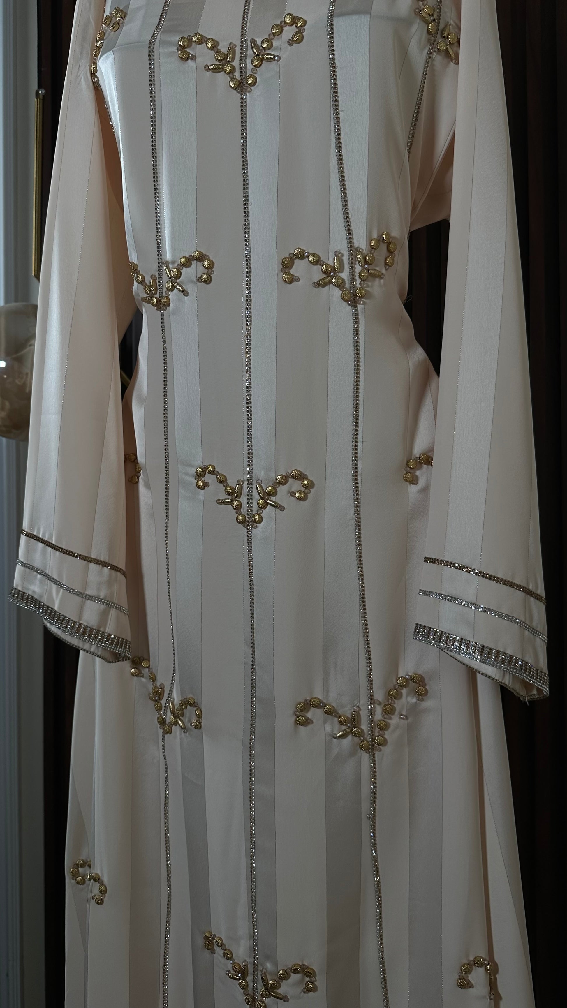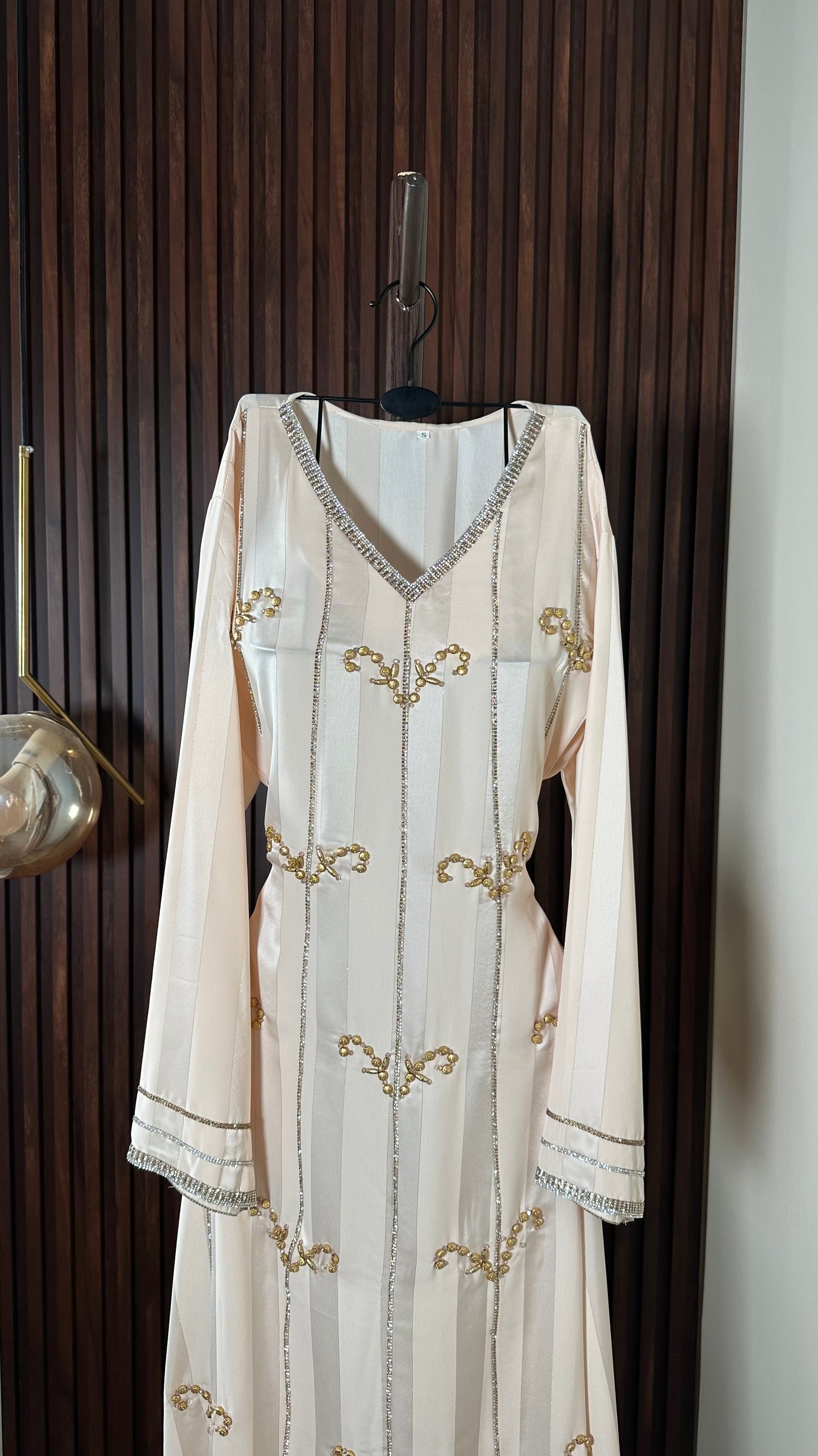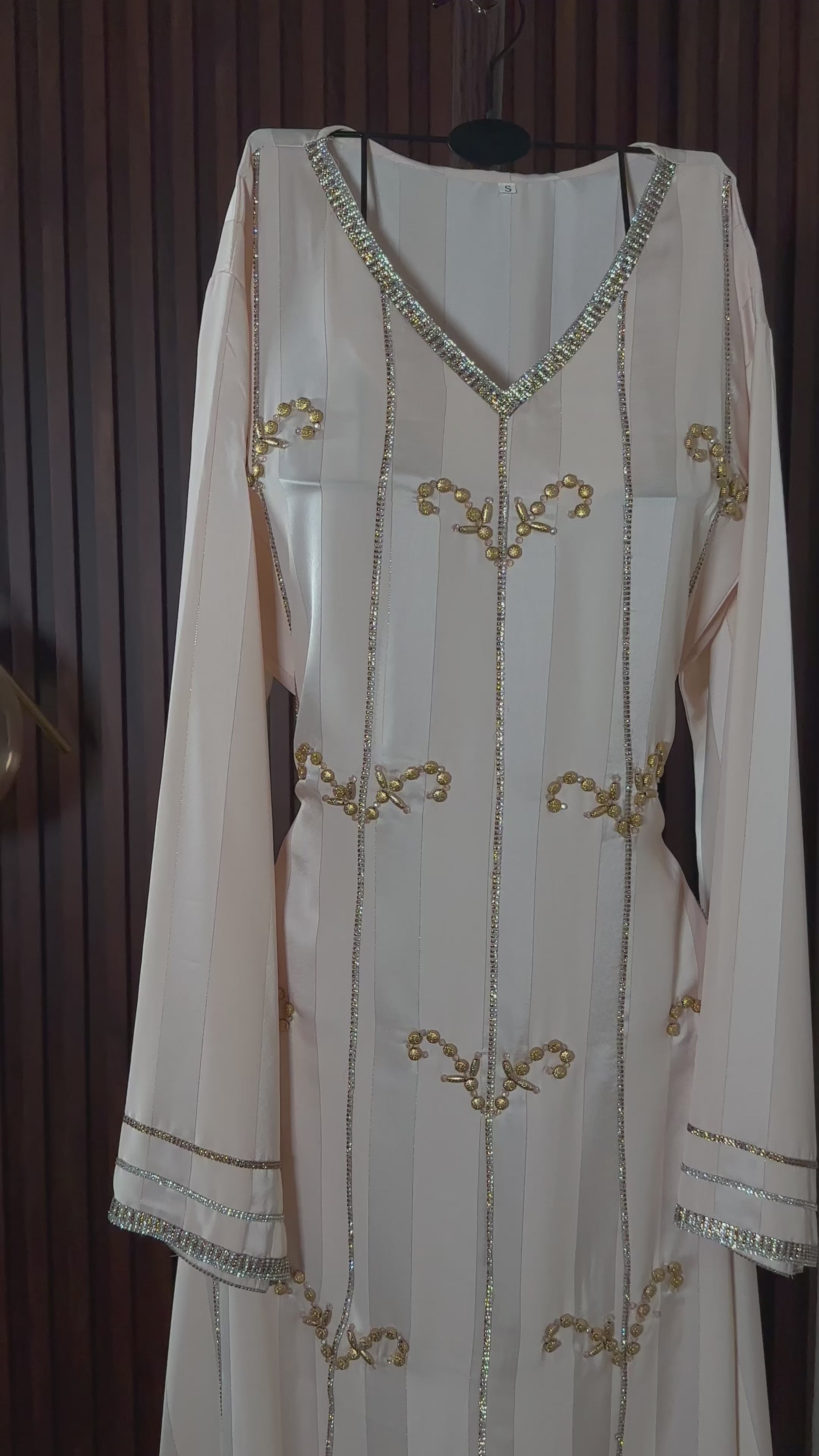 - **التطريز:** مزين بتفاصيل تطريز دقيقة تضيف لمسة من الفخامه والفن، مع أشكال متقنة تعكس الذوق الرفيع.