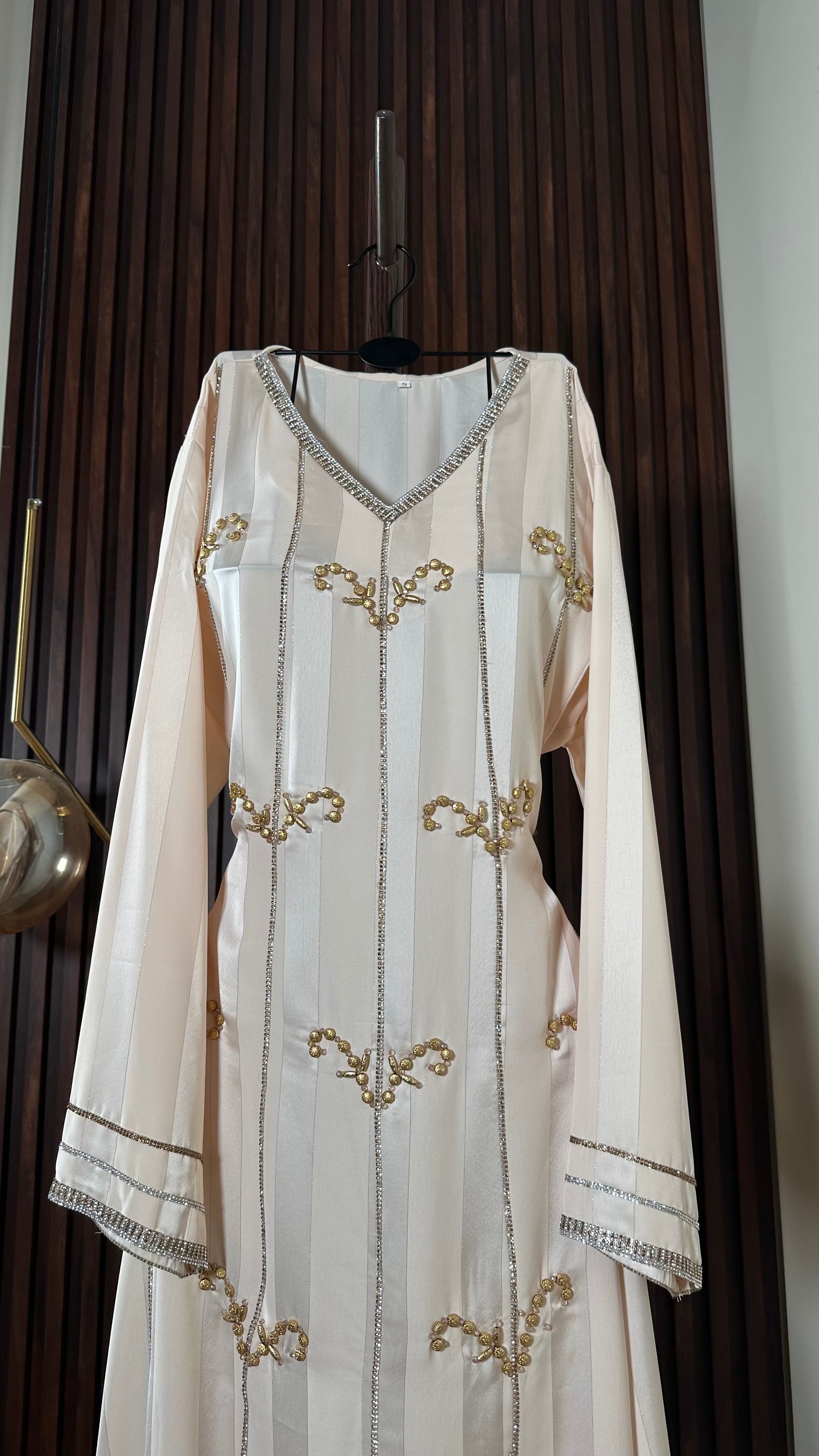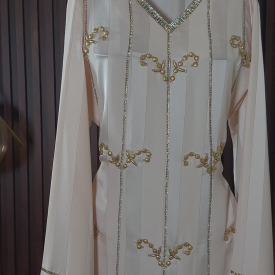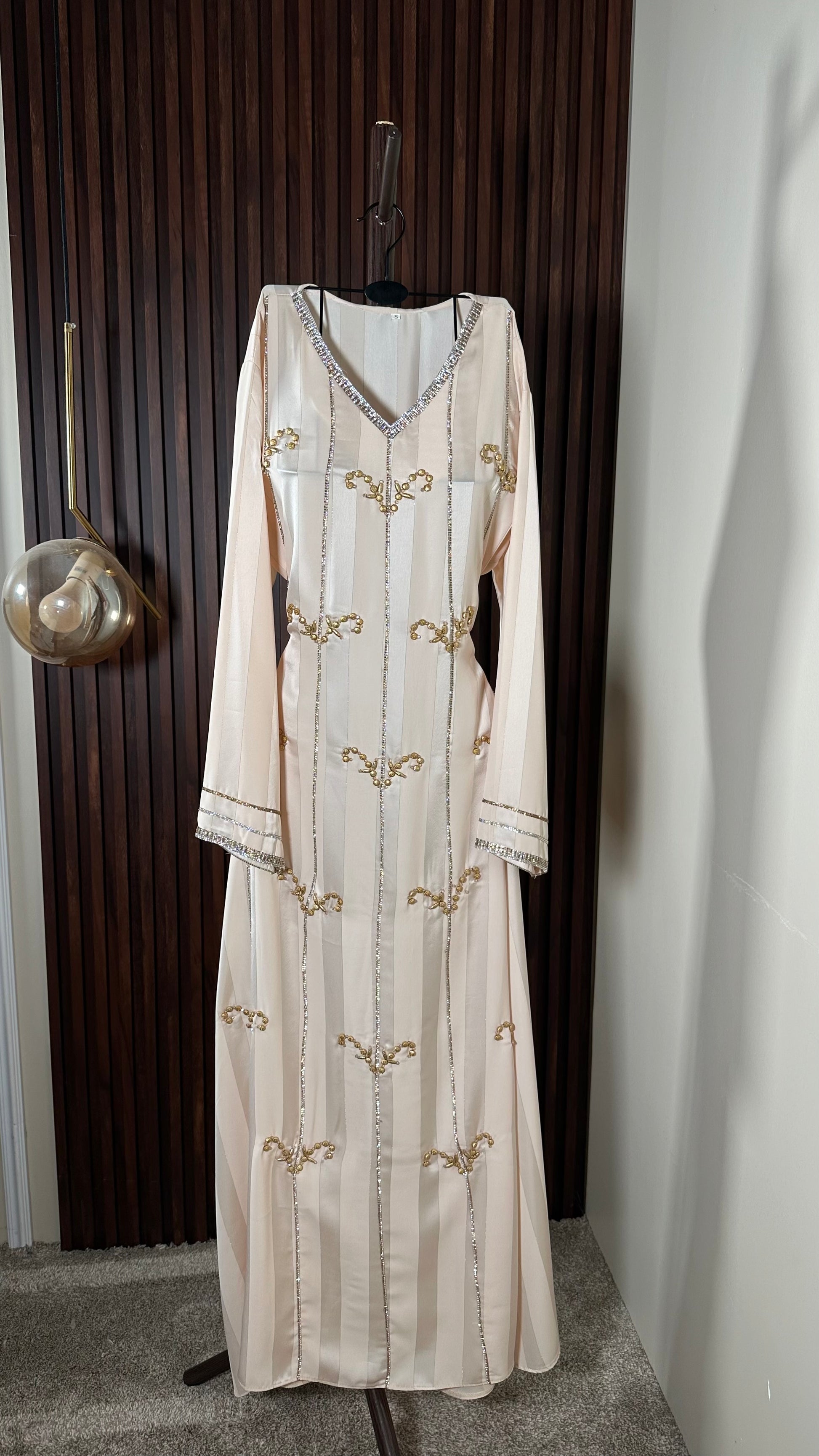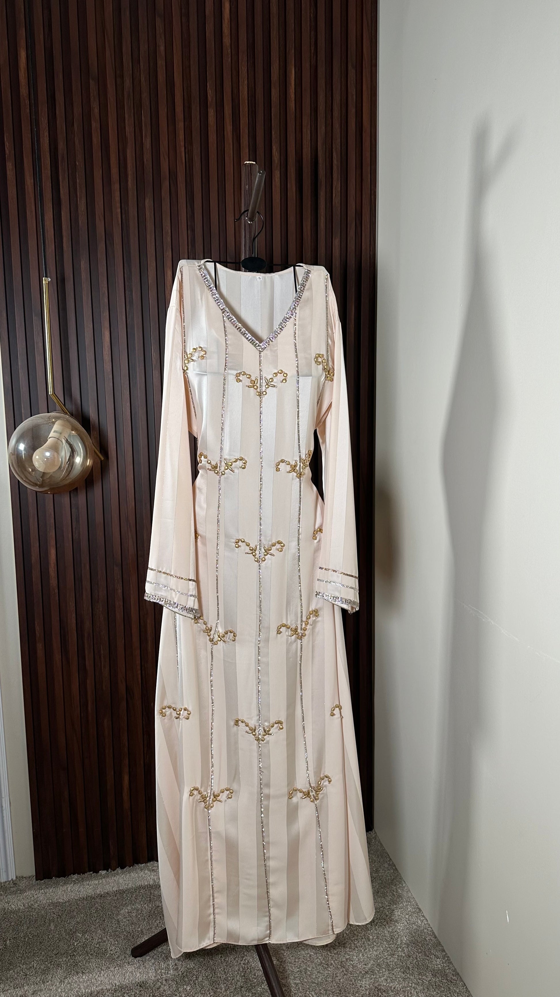 - **التطريز:** مزين بتفاصيل تطريز دقيقة تضيف لمسة من الفخامه والفن، مع أشكال متقنة تعكس الذوق الرفيع.