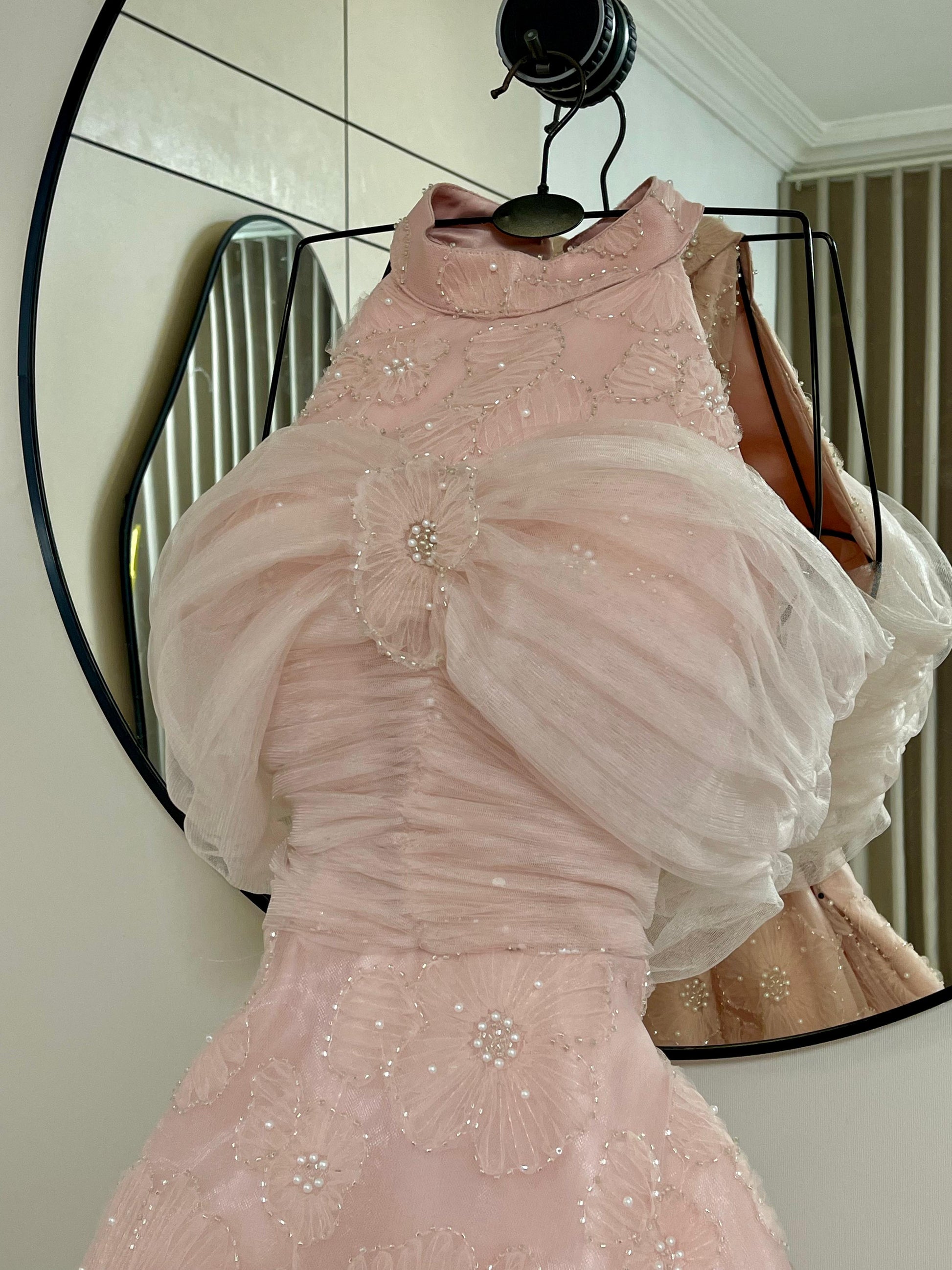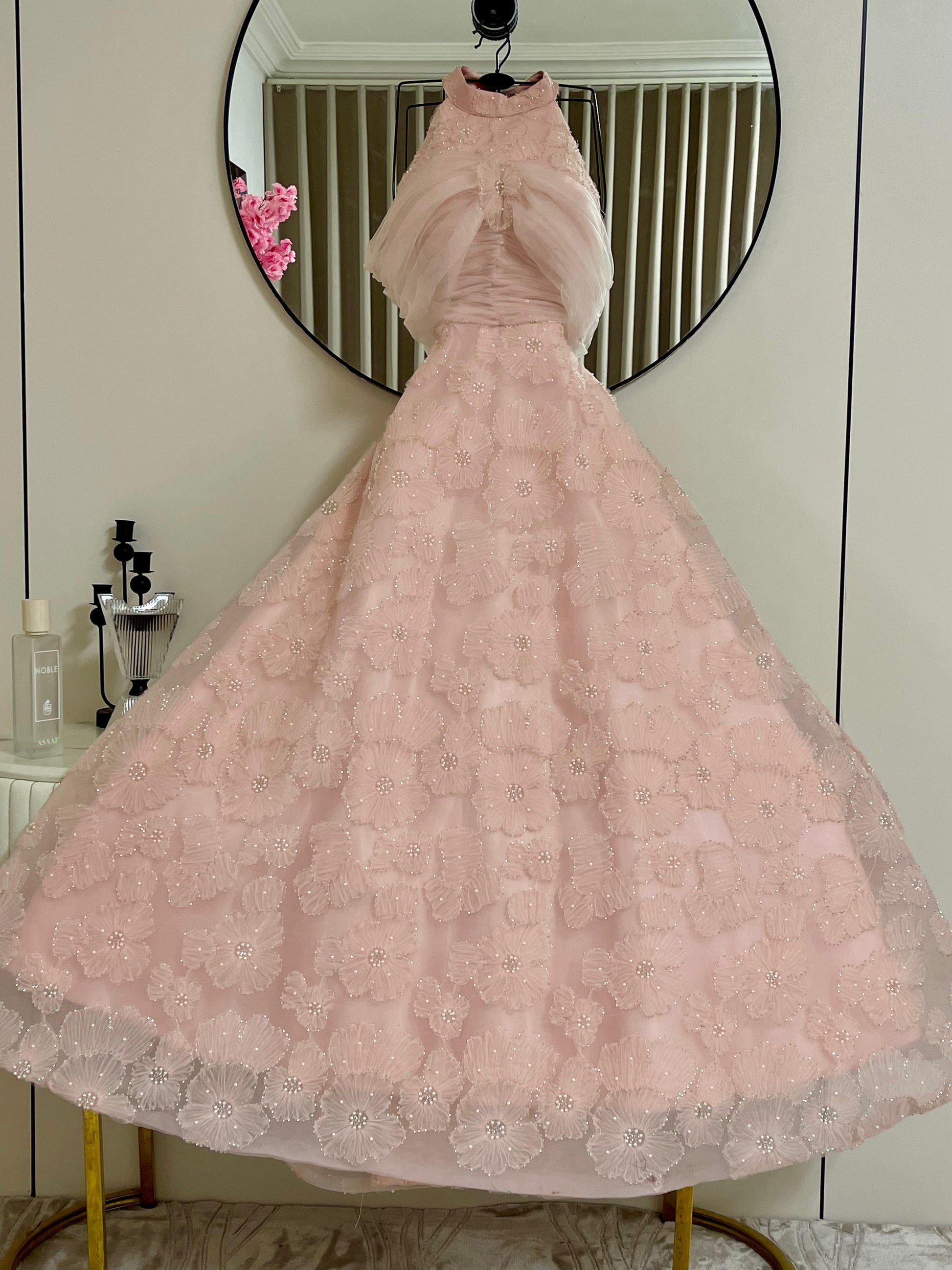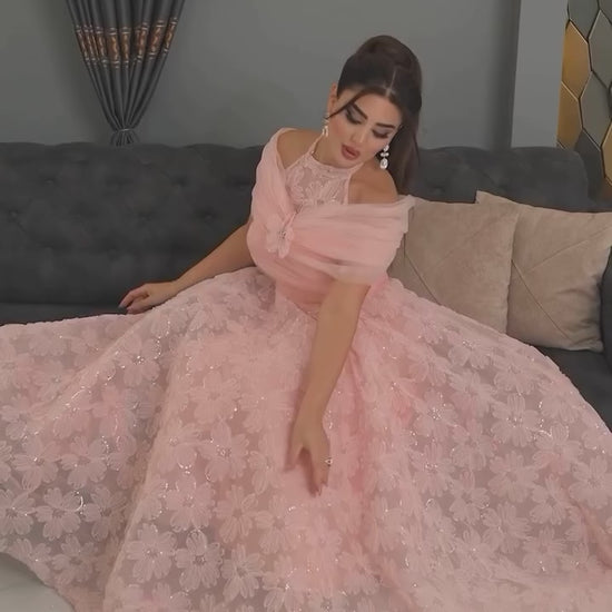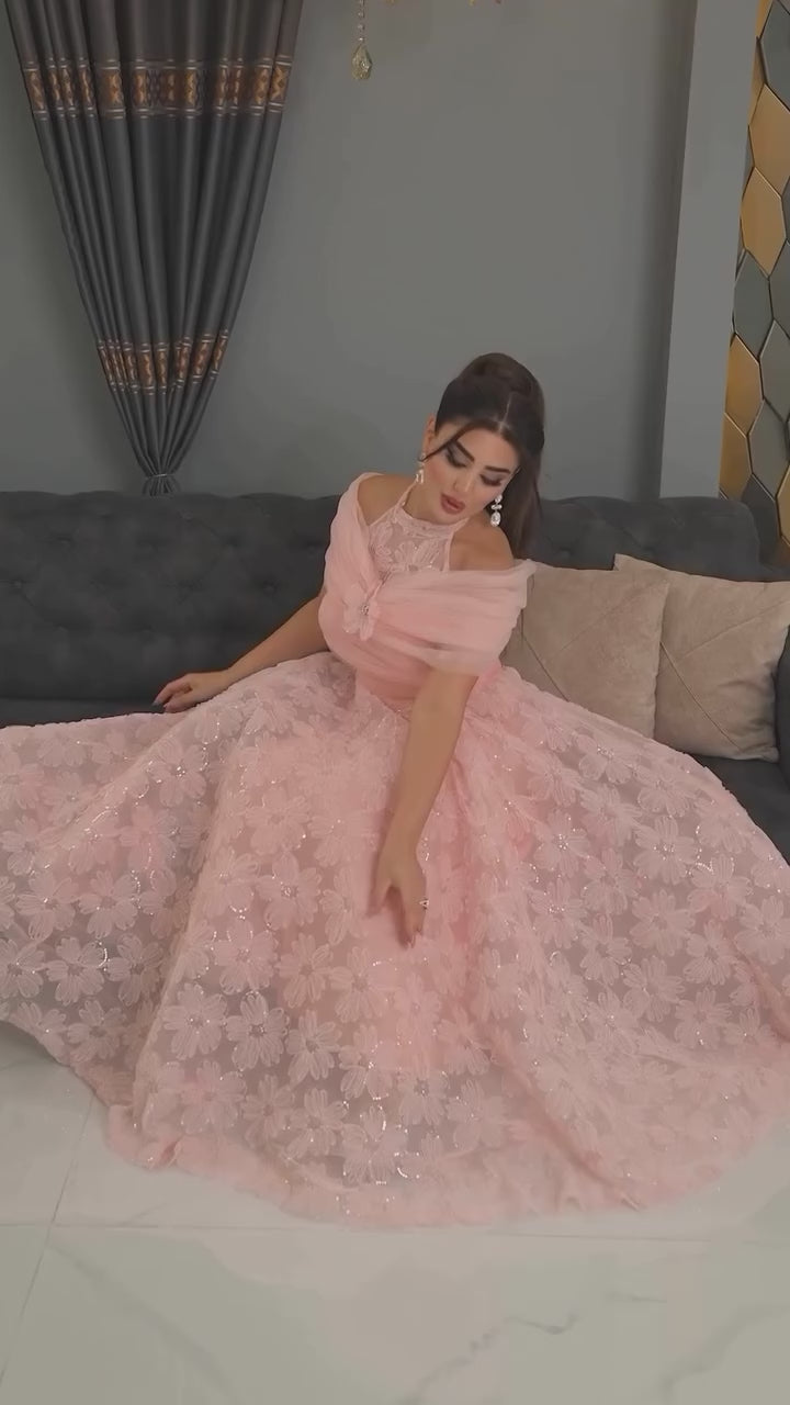 **اجعلي كل لحظة تتألقين فيها بهذا الفستان الزهري الخلاب، واجذبي الأنظار حيثما كنتِ!**
