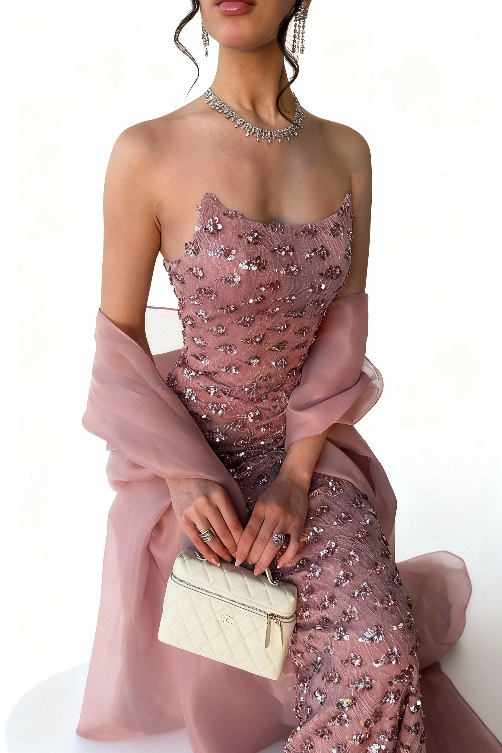 - **الزخارف:** تزين الفستان بخرزات لامعة، تضفي لمسة من الفخامة وتُبرز الإثارة في كل زاوية.