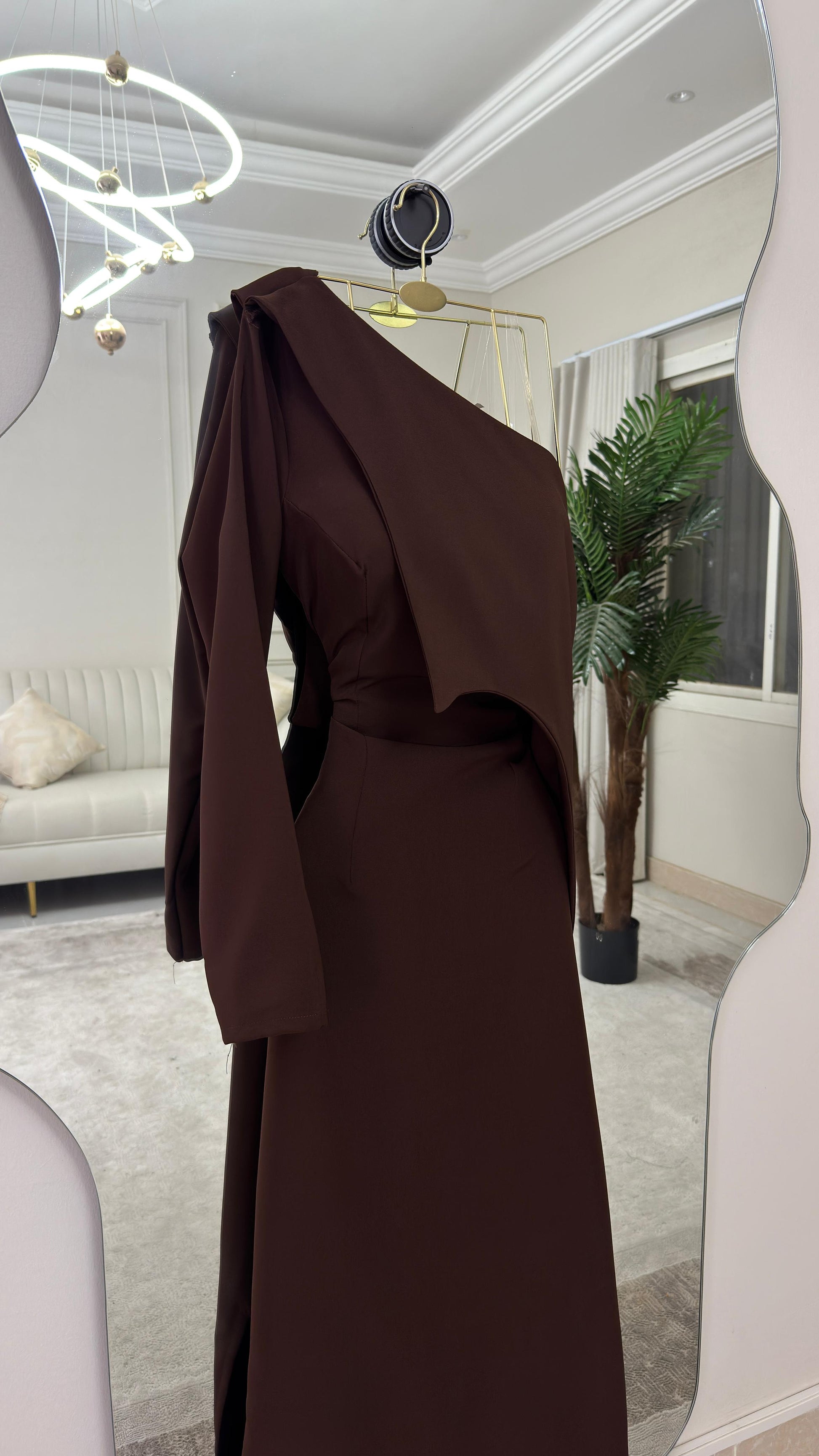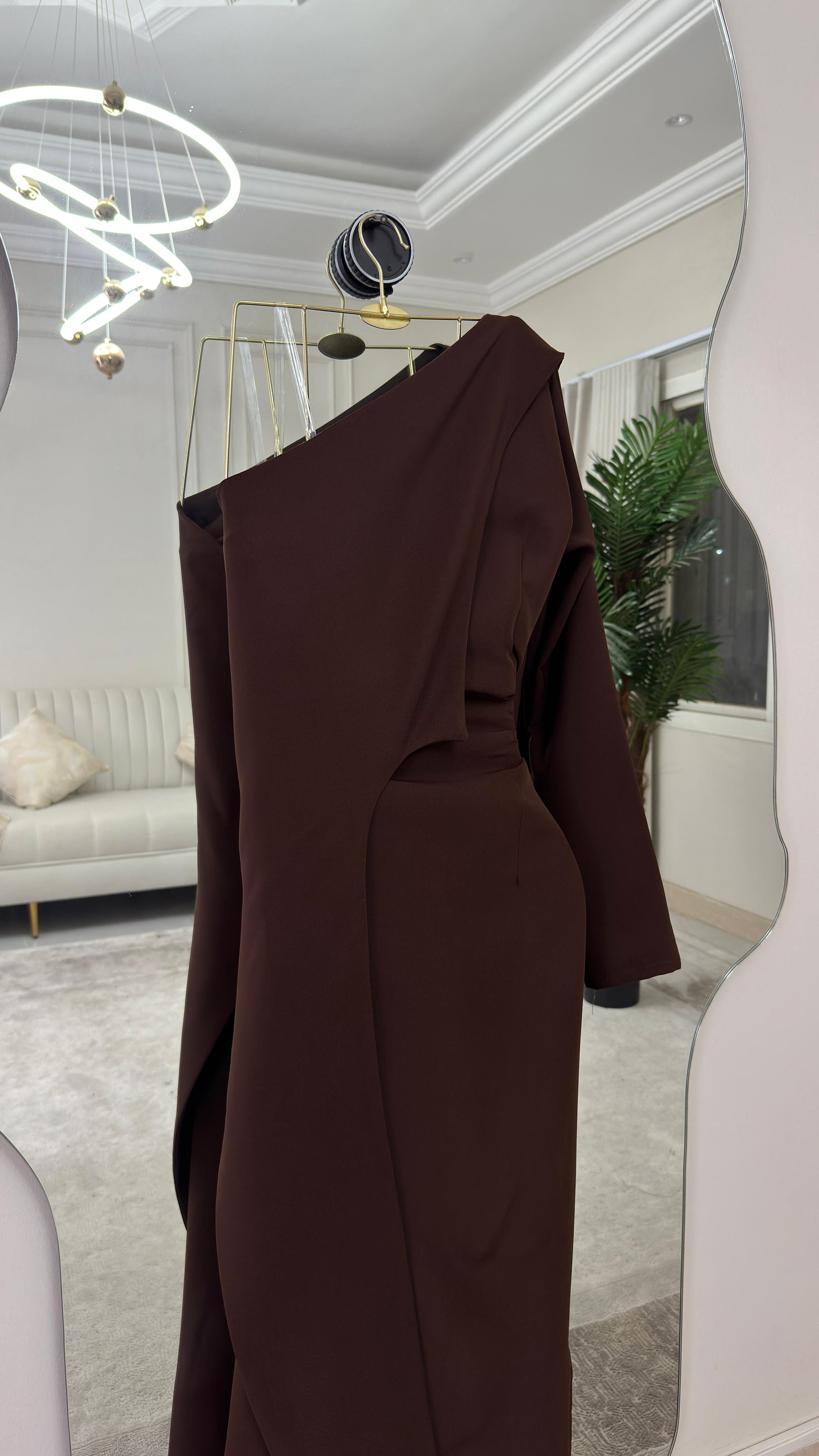 تألقي بأناقة عصرية مع هذا الفستان البرونزي المذهل، الذي يجسد الجاذبية والرقي في كل تفاصيله. إنه الاختيار المثالي لإطلالة مميزة تناسب حفلات السهرات والمناسبات الخاصة.