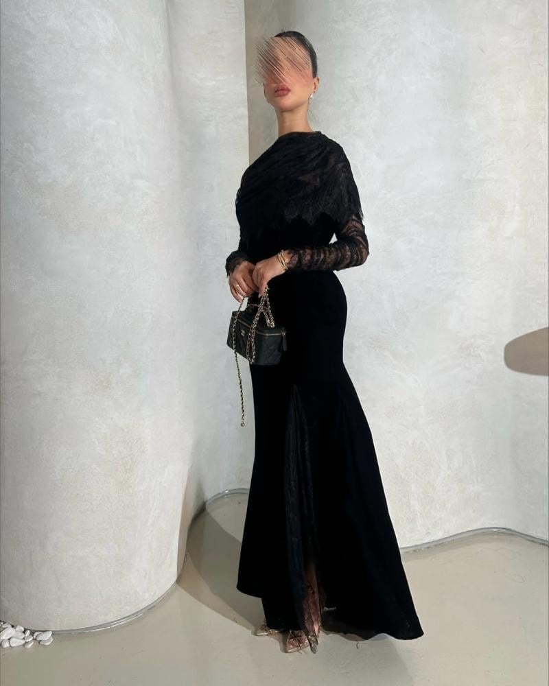 فستان أسود بلفة الدانتيل