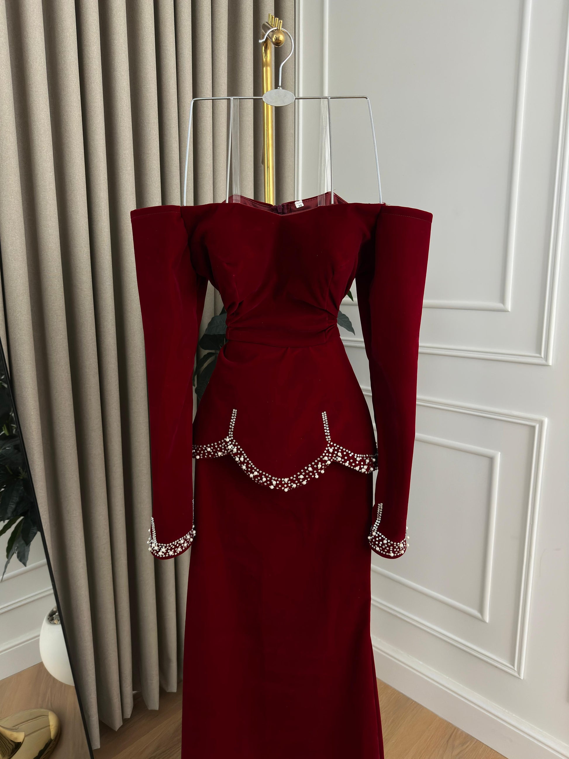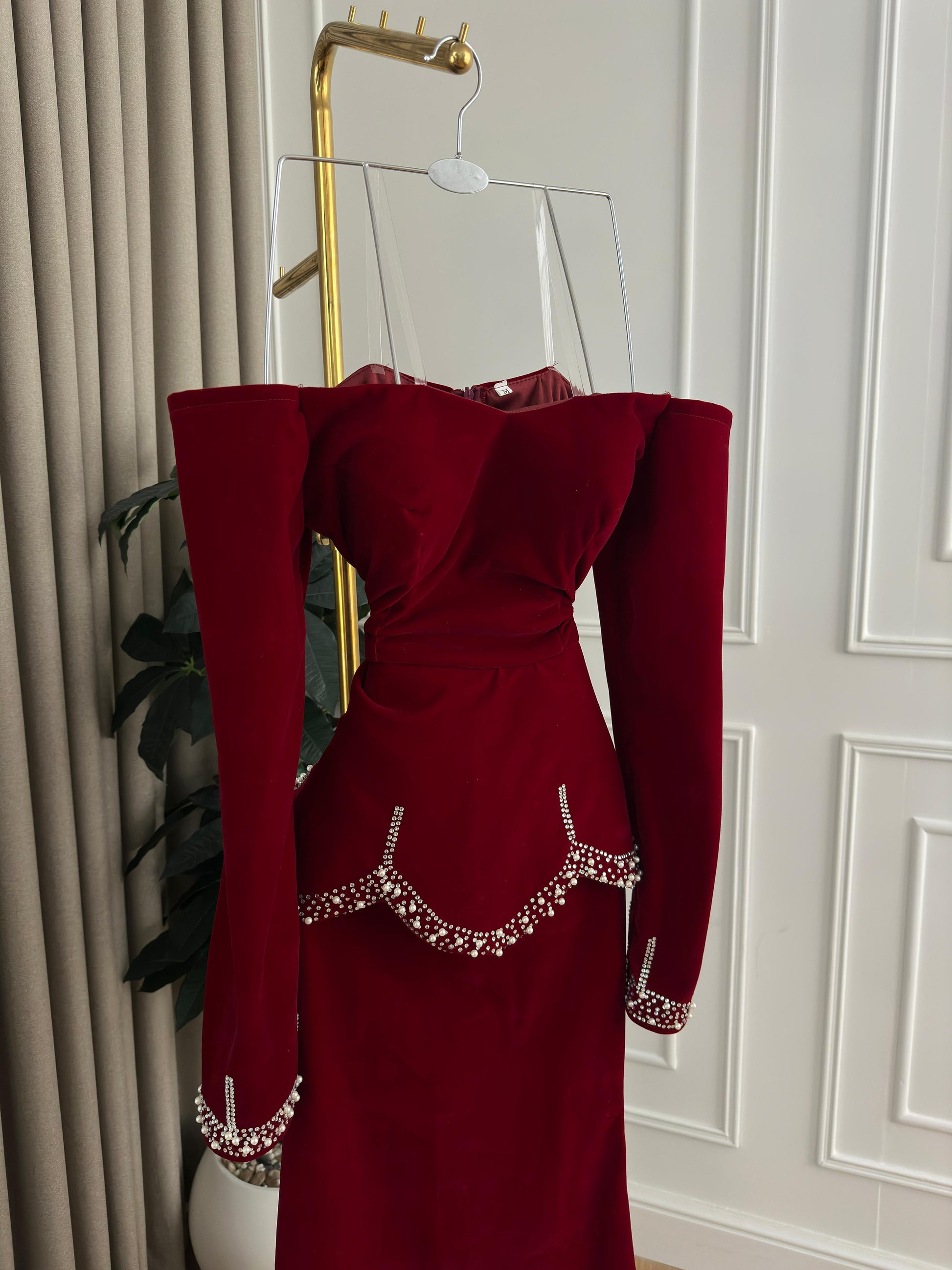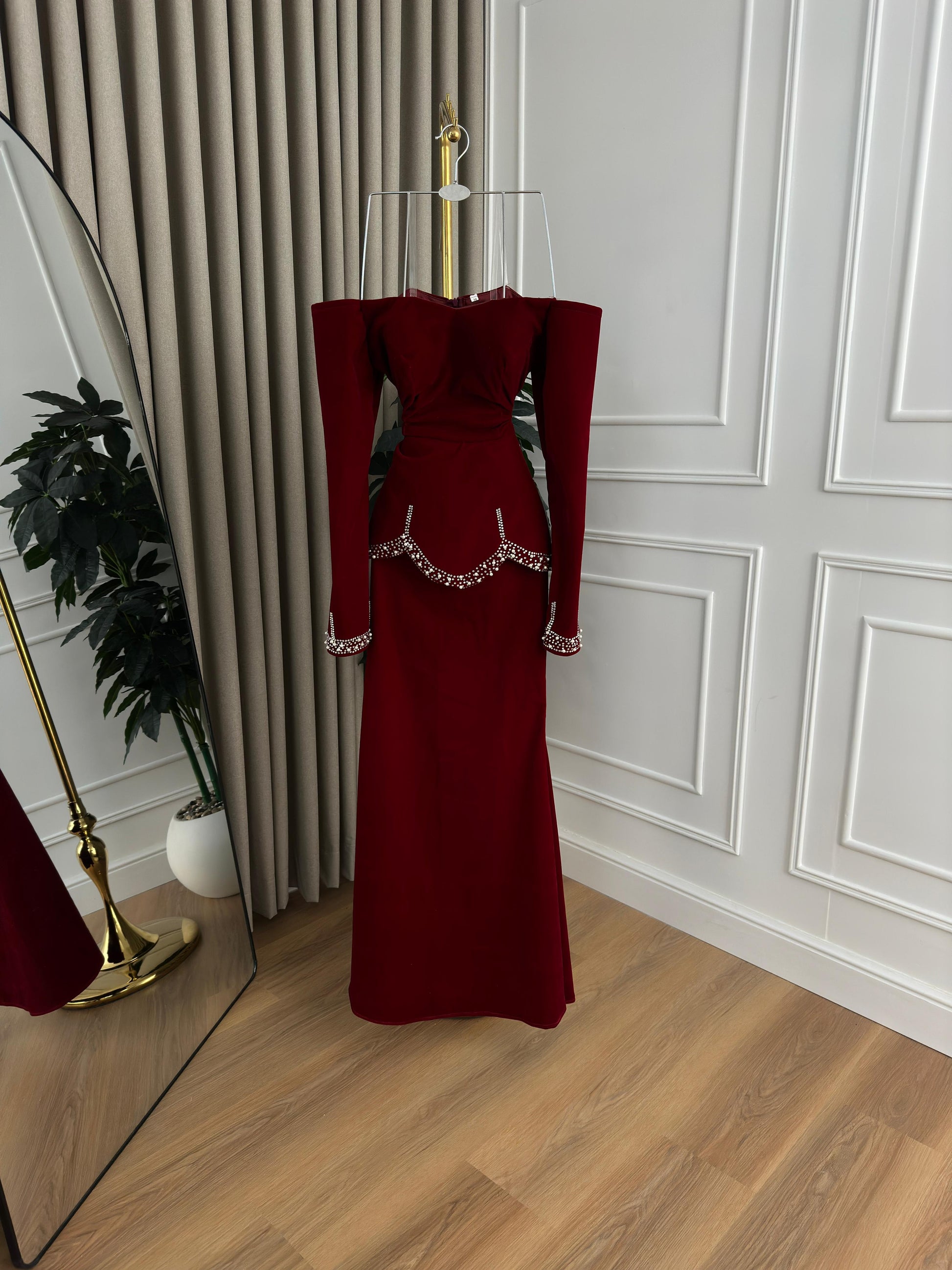 استعدي لتكوني محط الأنظار مع هذا الفستان العنابي الفاخر، الذي يمزج بين الأناقة العصرية والتفاصيل الفريدة. إنه الخيار المثالي للمناسبات الخاصة حيث تريدين التألق بأسلوب مميز.