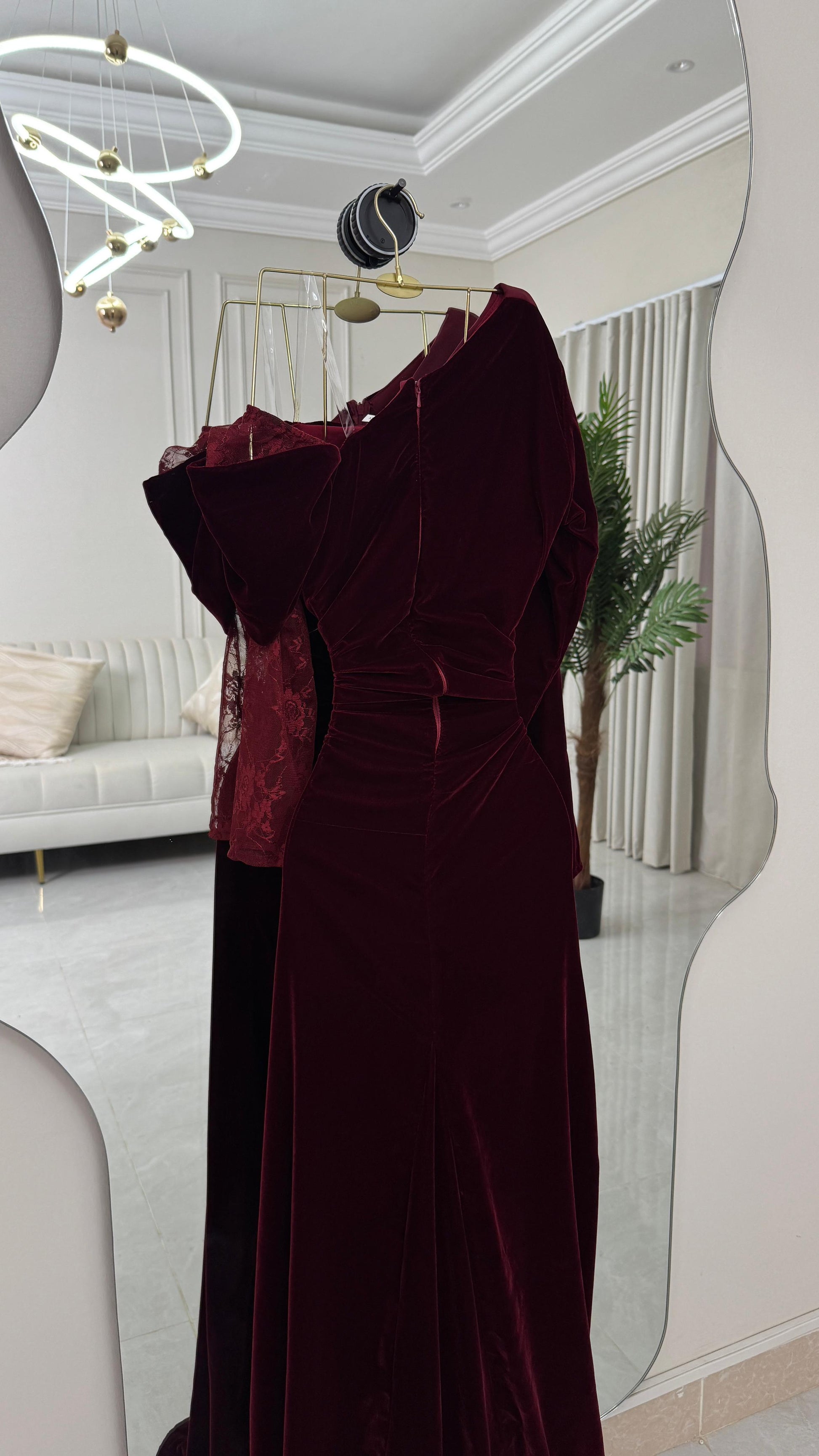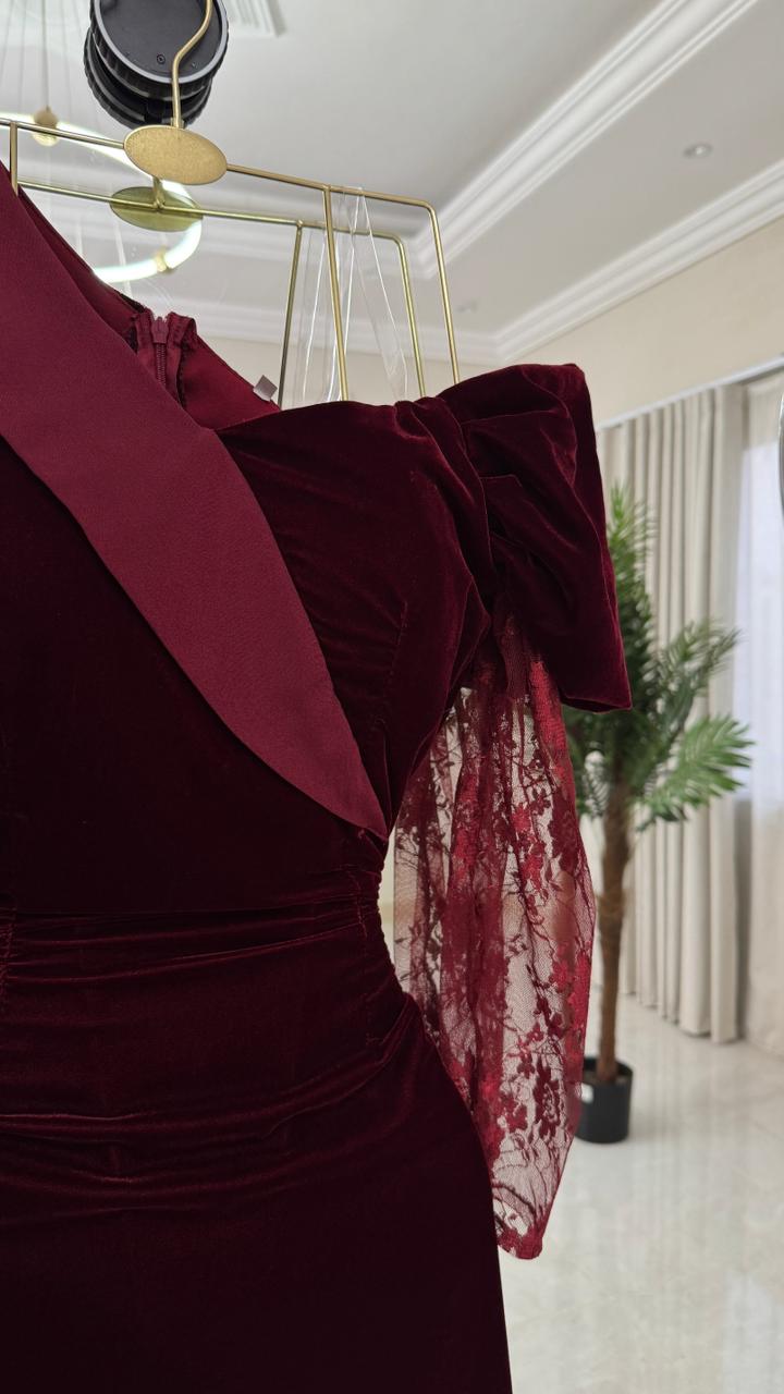 فستان بورغندي مخمل