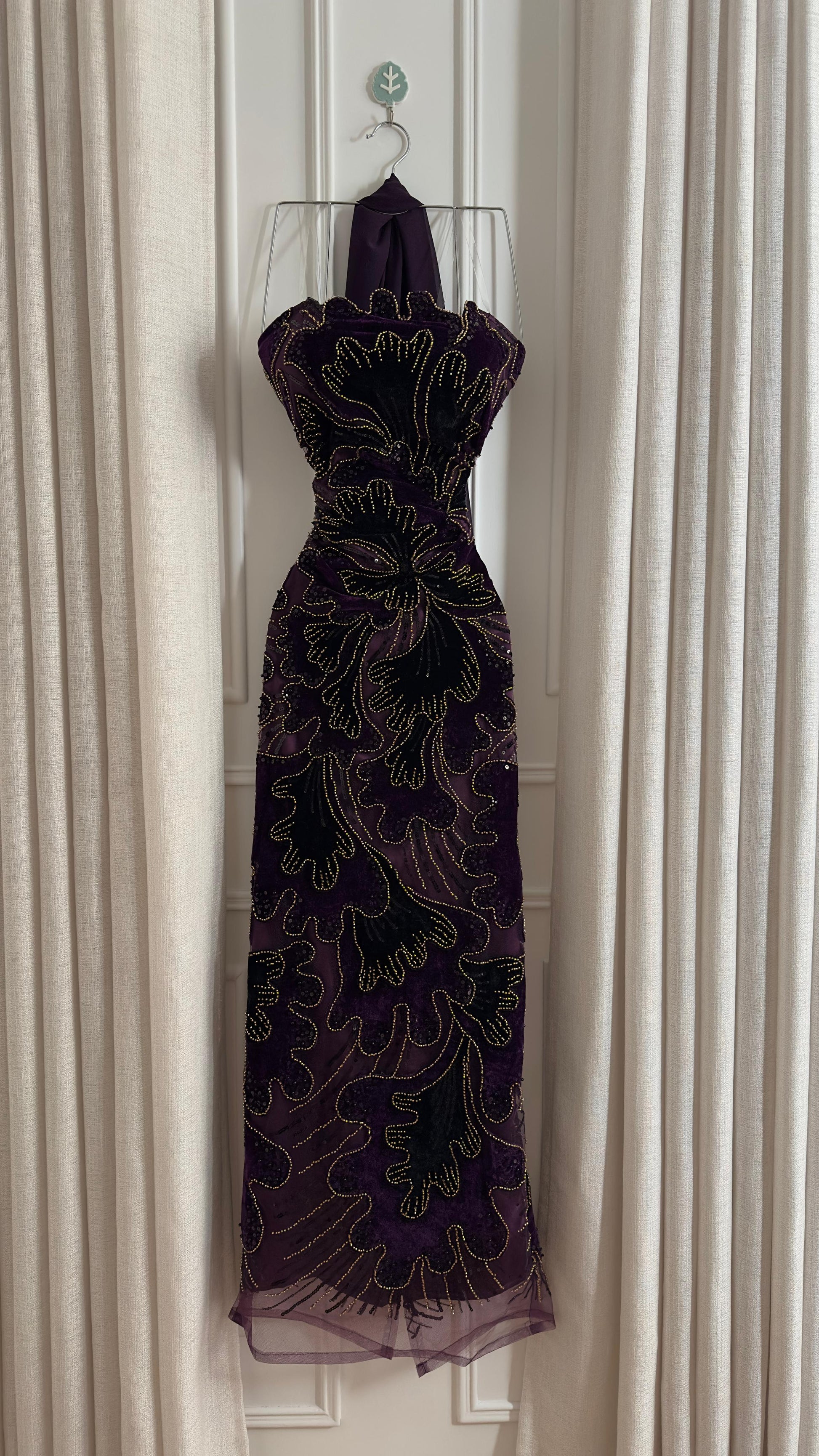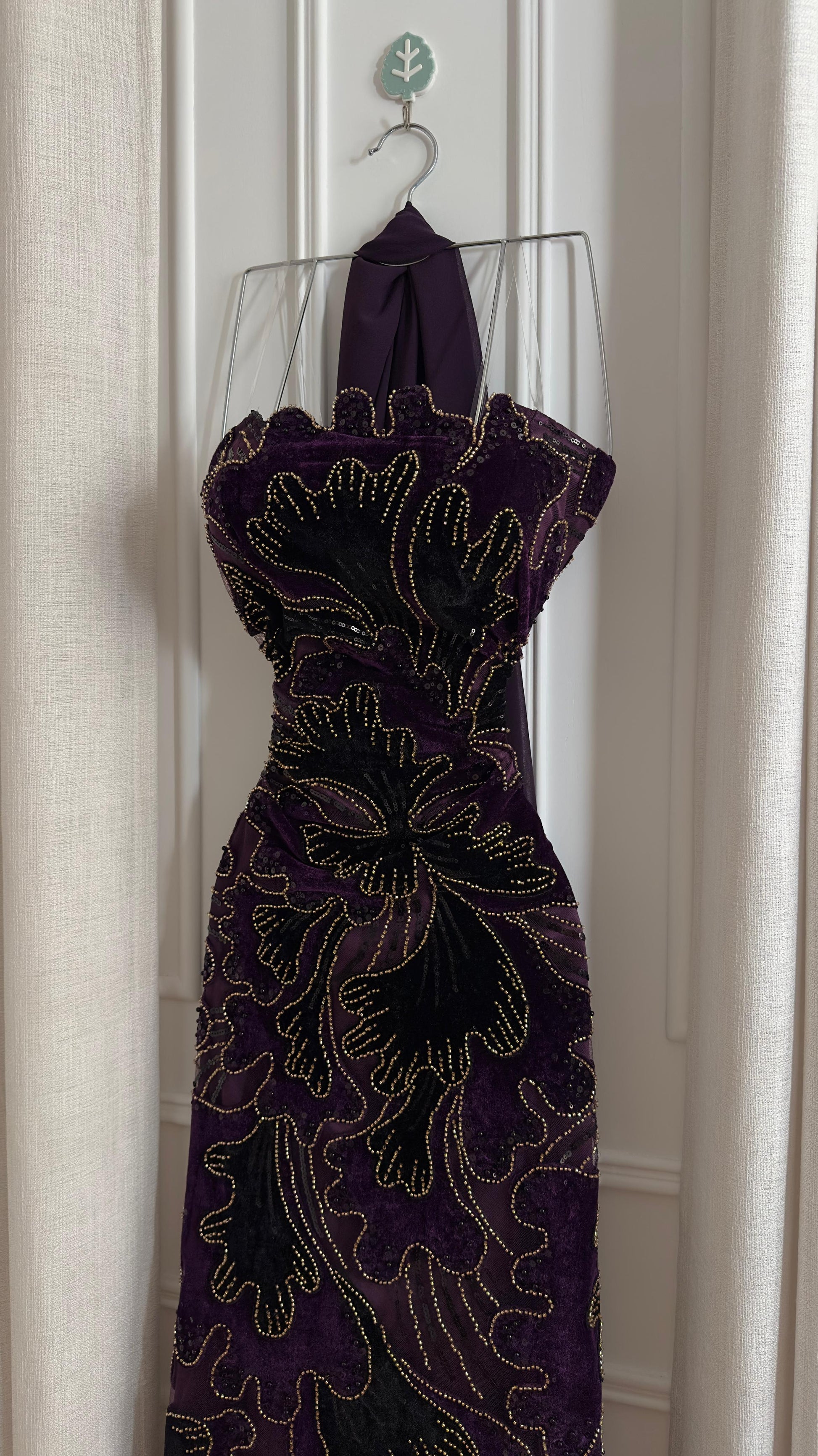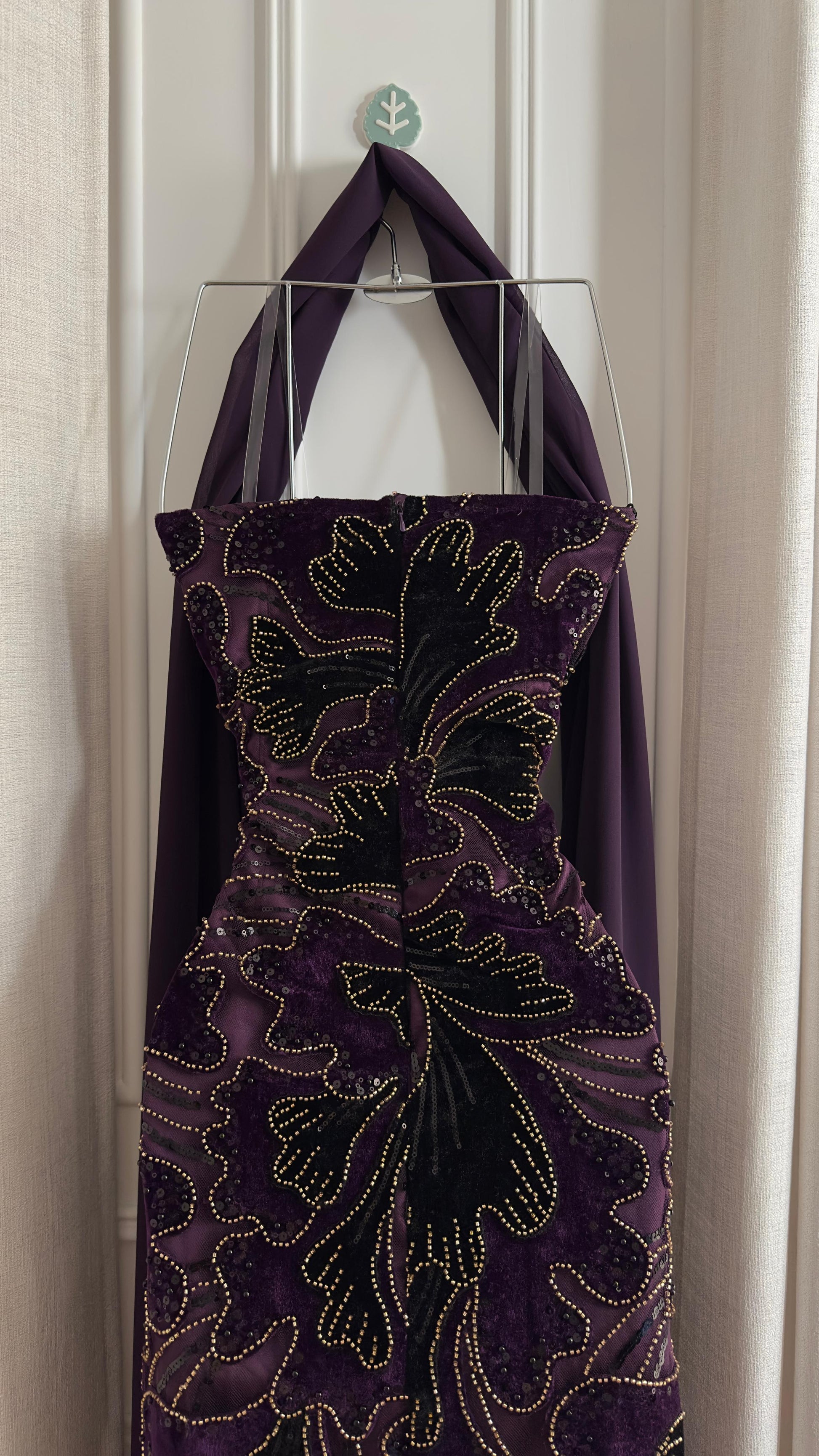 تألقي بإطلالة مثيرة وجذابة مع هذا الفستان الأرجواني الفاخر. يجسد التصميم الأنيق والفني، مما يجعله الخيار الأمثل للمناسبات الخاصة.