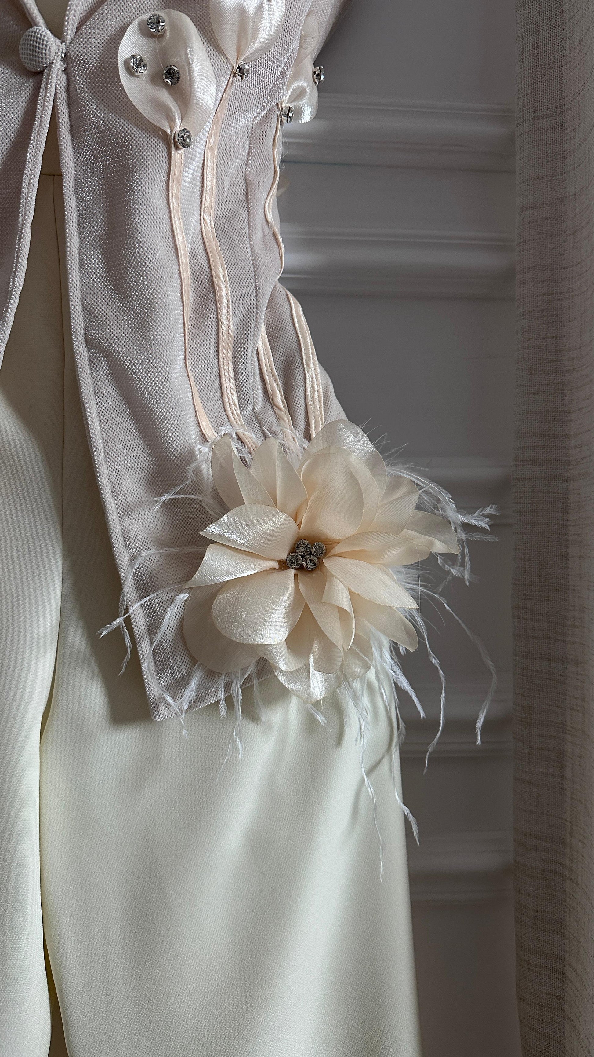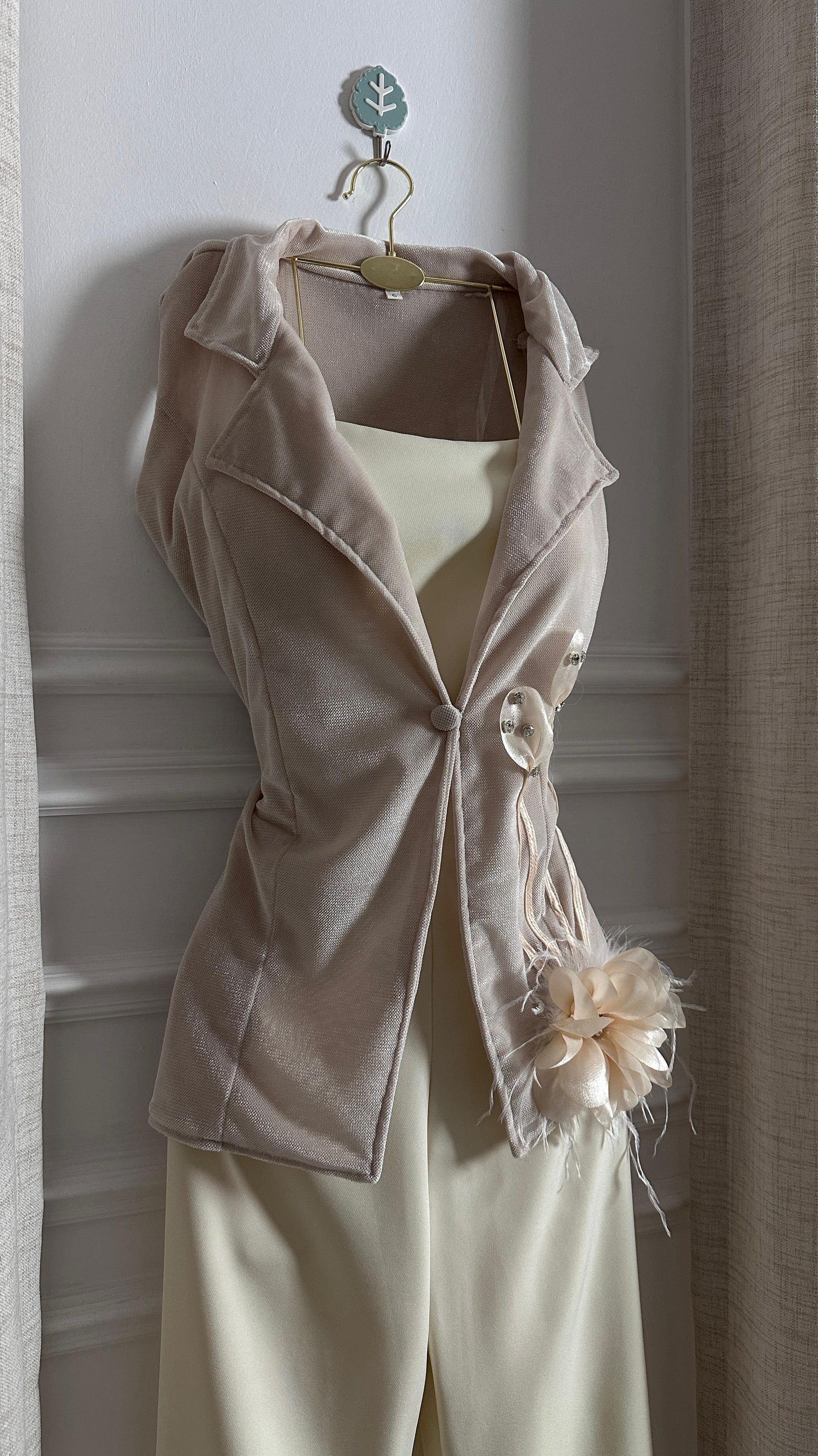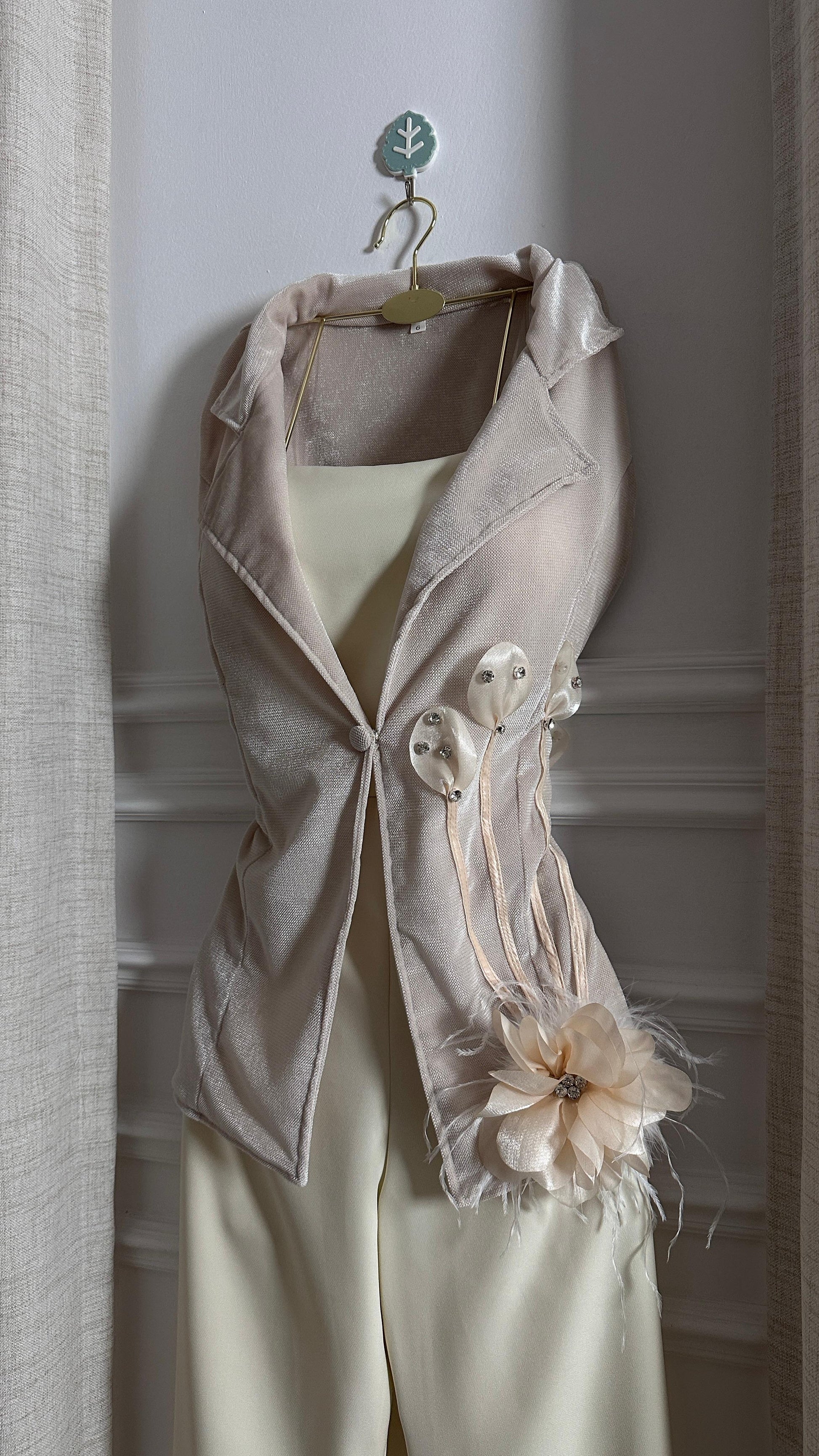 - **جاكيت مزين بتفاصيل فنية**: يضيف لمسة فريدة من الجمال.
