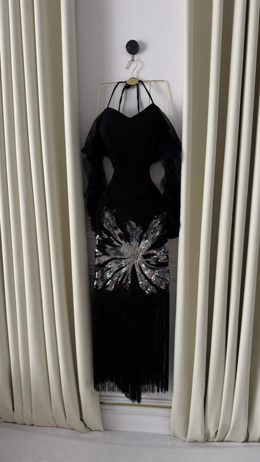 فستان أسود بنقش الزهر