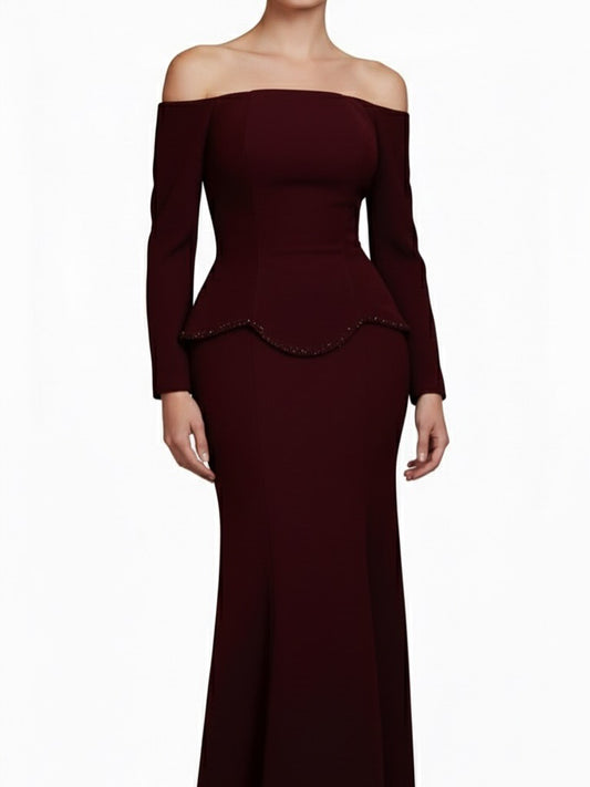 فستان سوليس للسهرات بأكمام طويلة